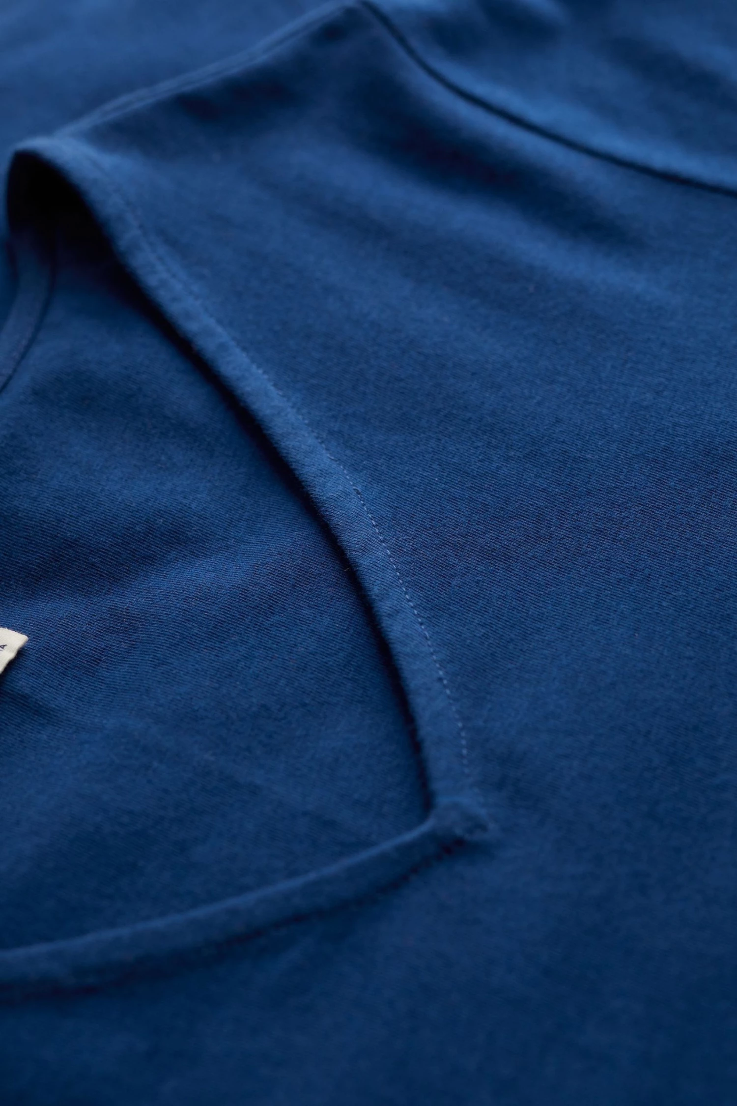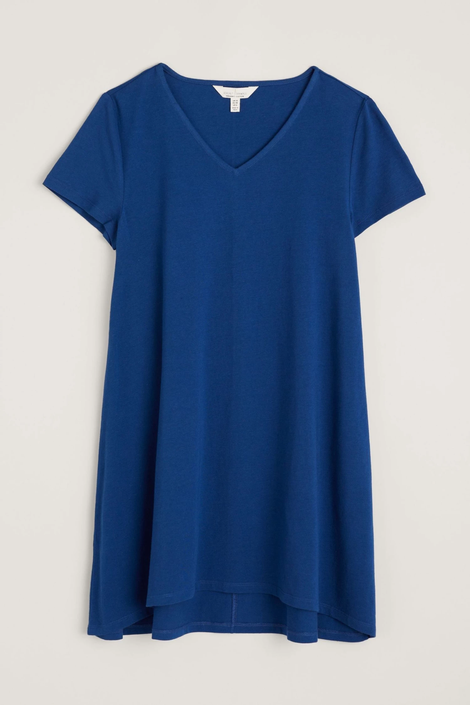 A V-neck tunic top with short sleeves, made from soft organic cotton jersey with a floral print.