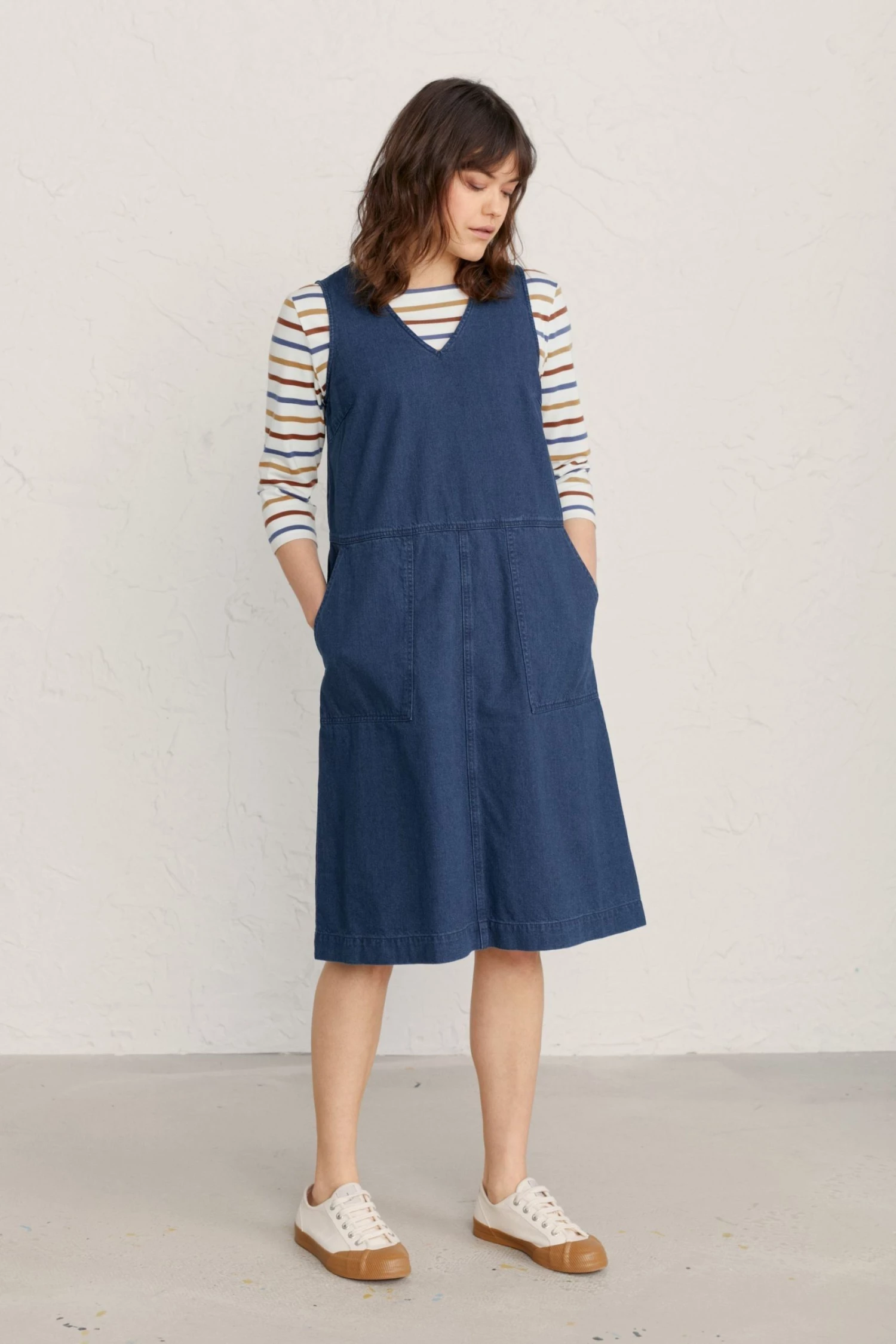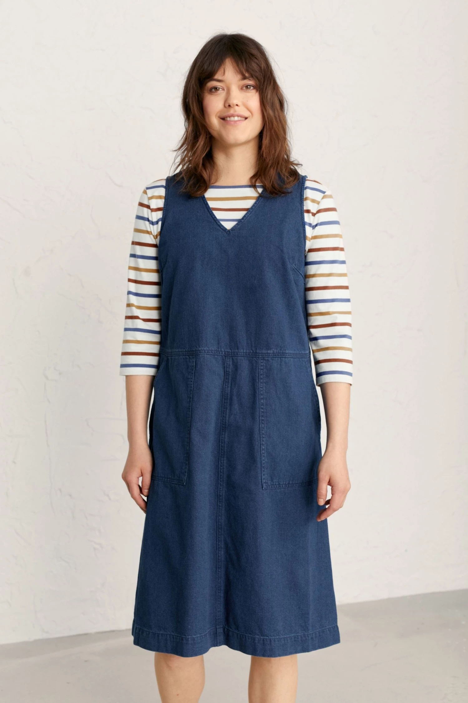 This semi-fitted, knitted cotton style has half-length sleeves perfect for layering. It has a crew neck and ribbed panels.