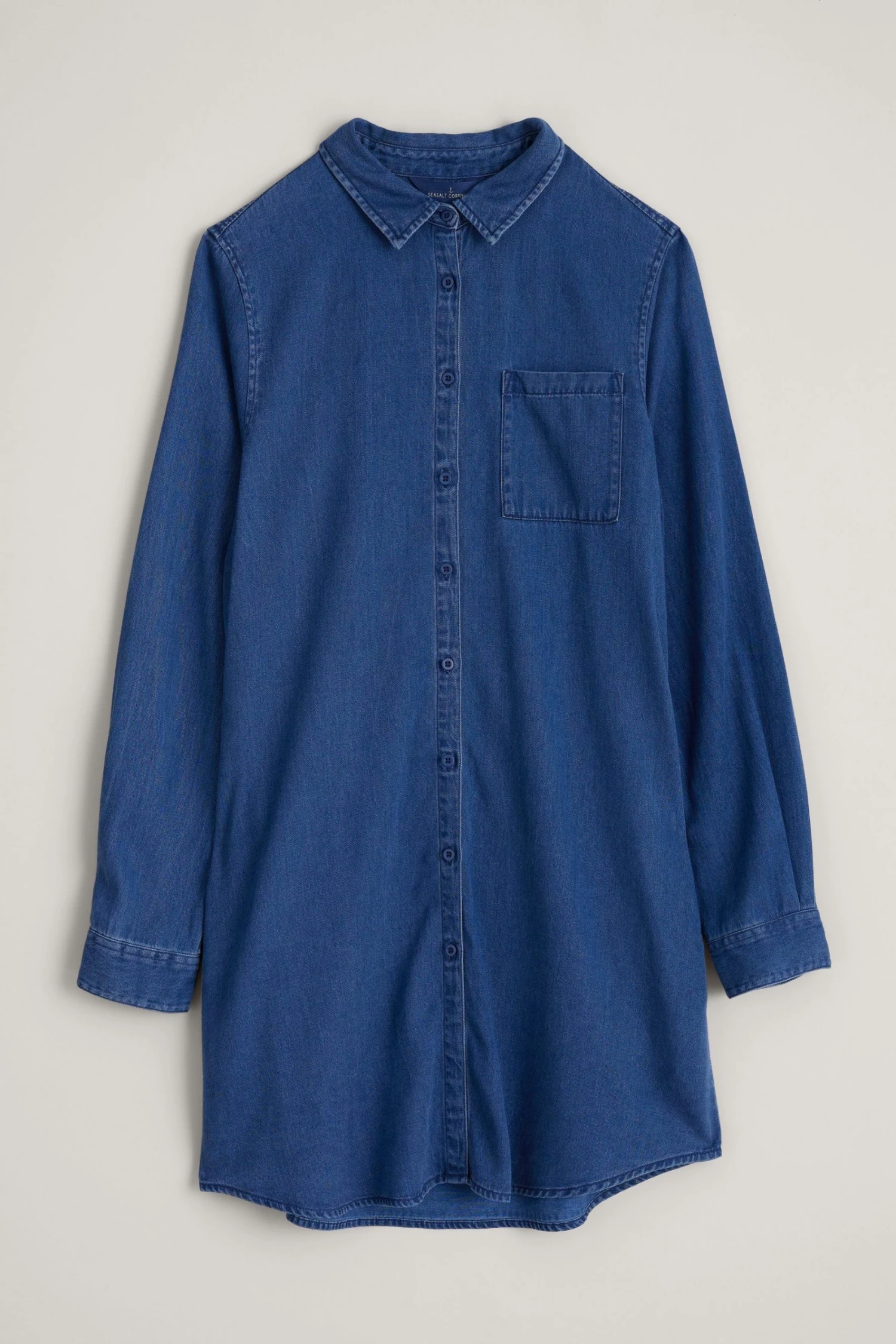 A longline shirt made from a silky-soft blend of EU Ecolabel certified TENCEL™ Modal and cotton. With a classic collar, button-through front and chest patch pocket, we love it paired with everything from leggings and narrow trousers to skirts.
