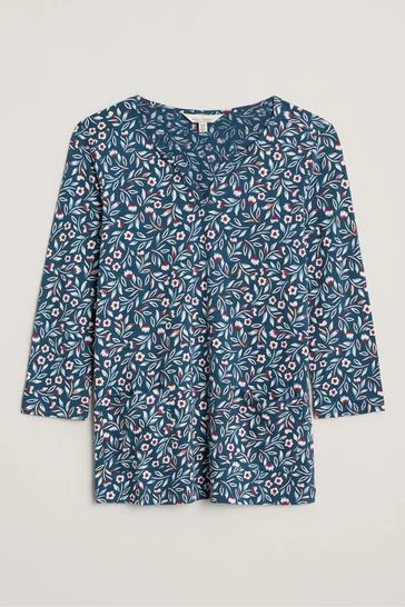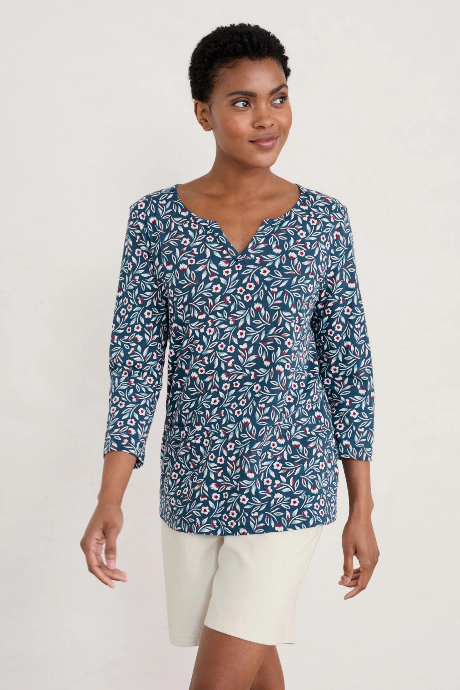 Jersey top made from soft organic cotton, with a pretty print designed in Cornwall and thoughtful details: a notch detail at the neck and two front patch pockets.