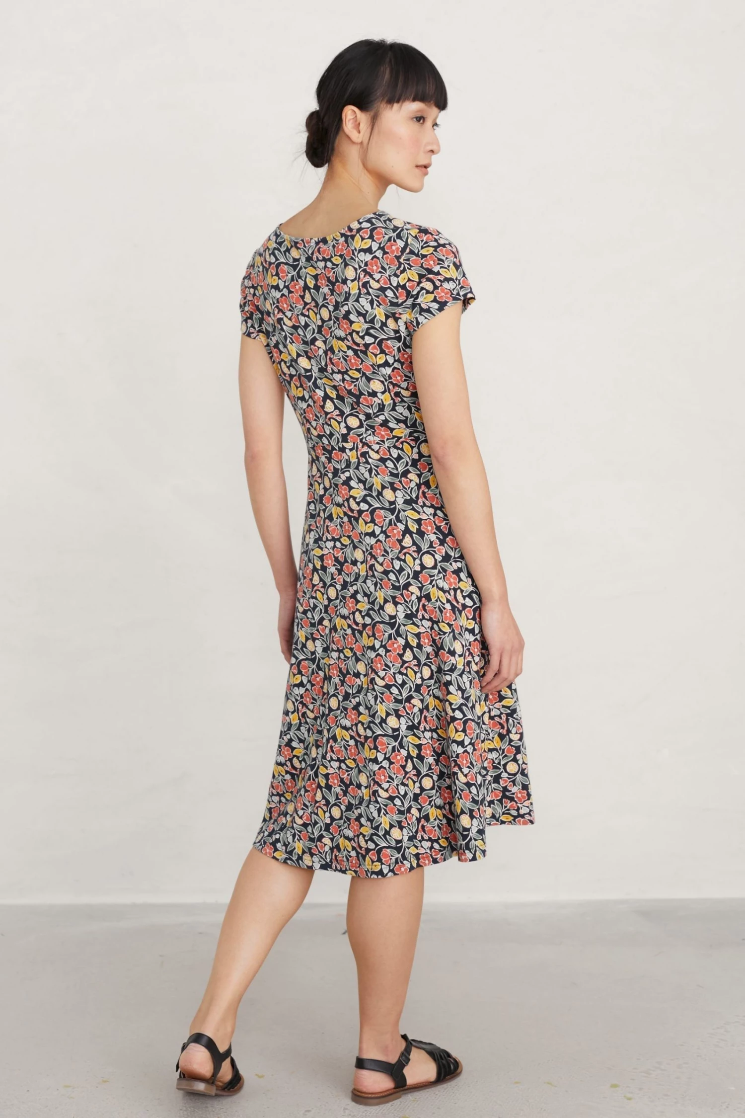 Fit-and-flare dress with scoop neck and cap sleeves in organic cotton jersey with stretch.