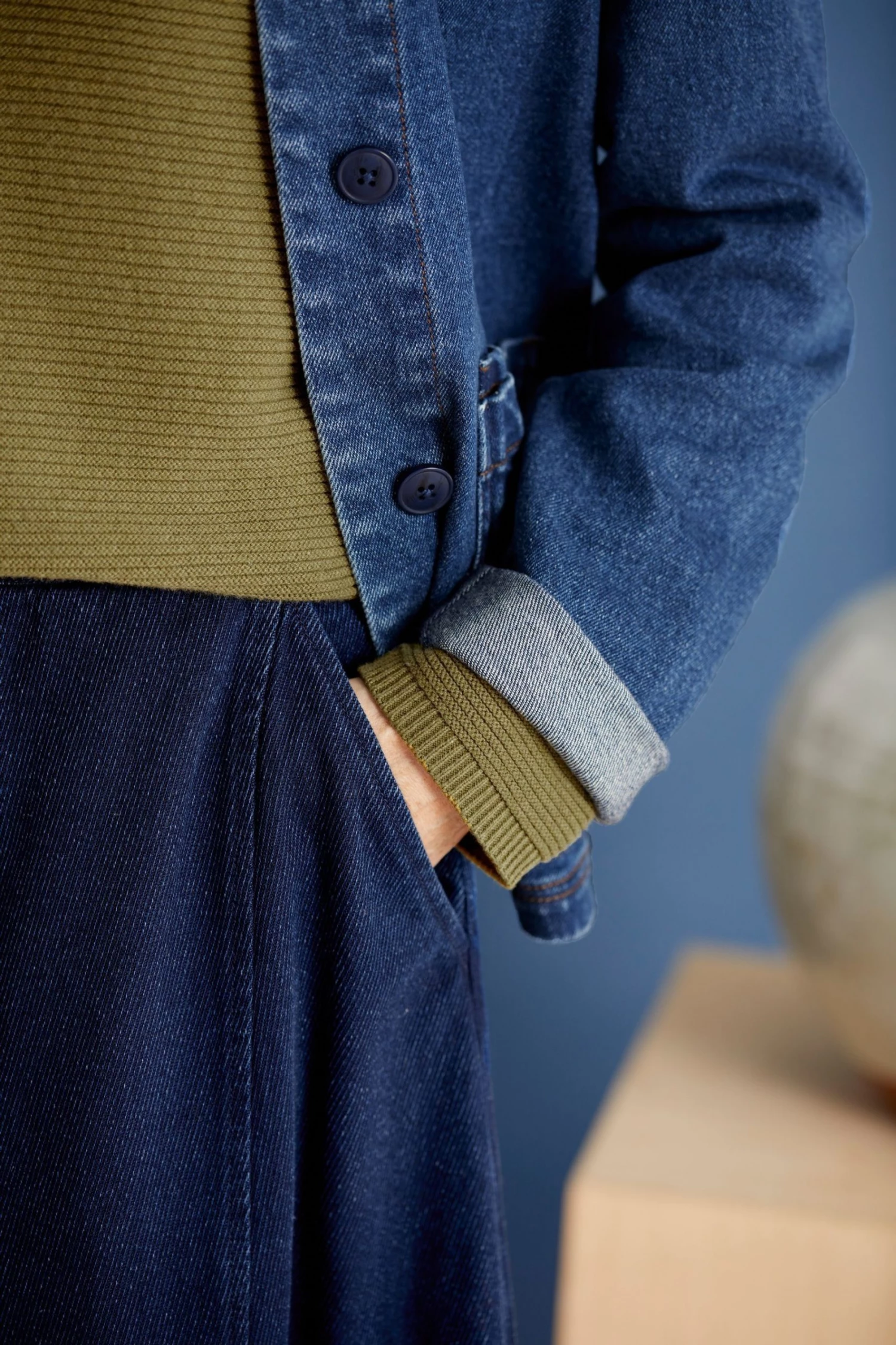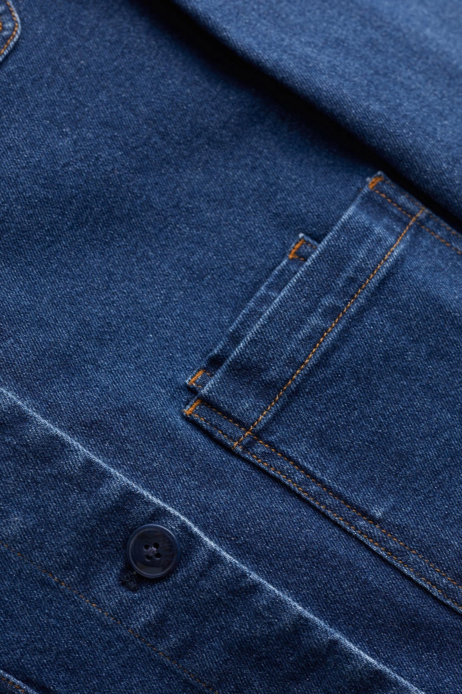 Organic cotton denim jacket with a relaxed shape inspired by Cornish workwear.