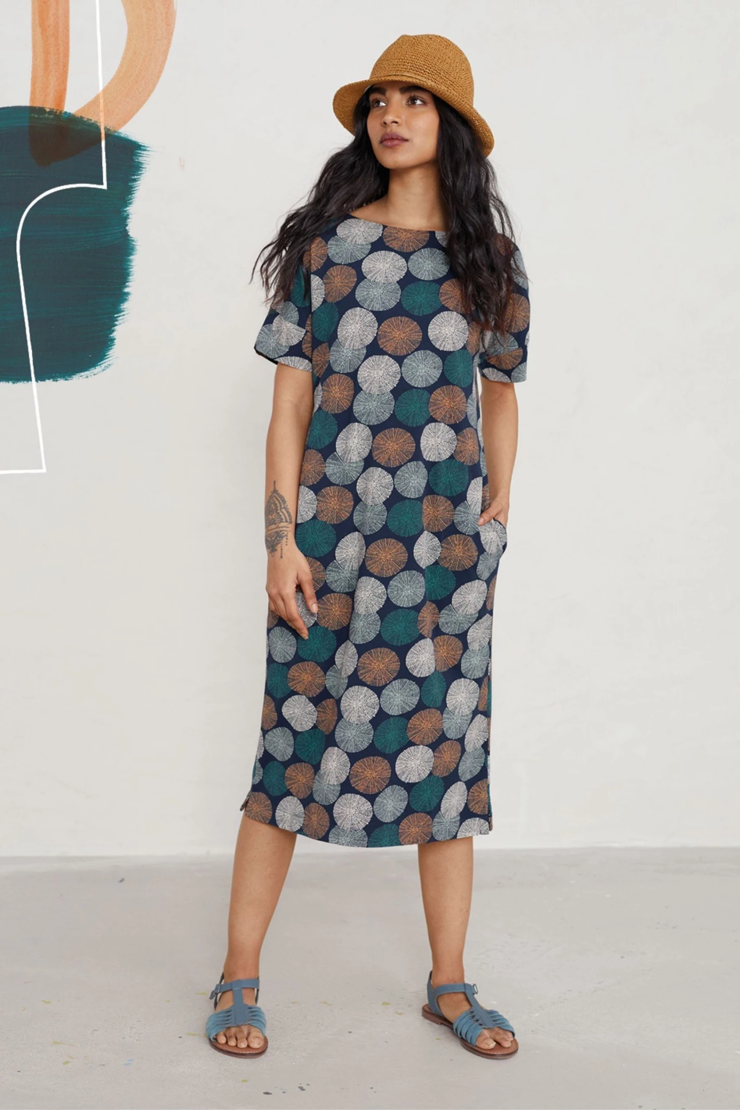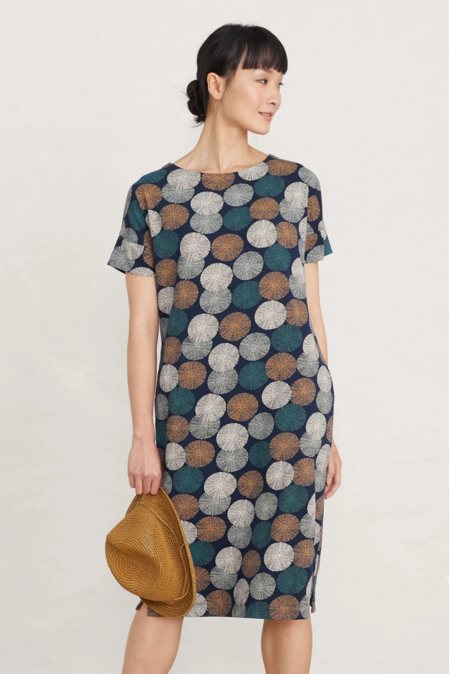 A simple shift dress made from organic cotton jersey, with a summery Seasalt print.