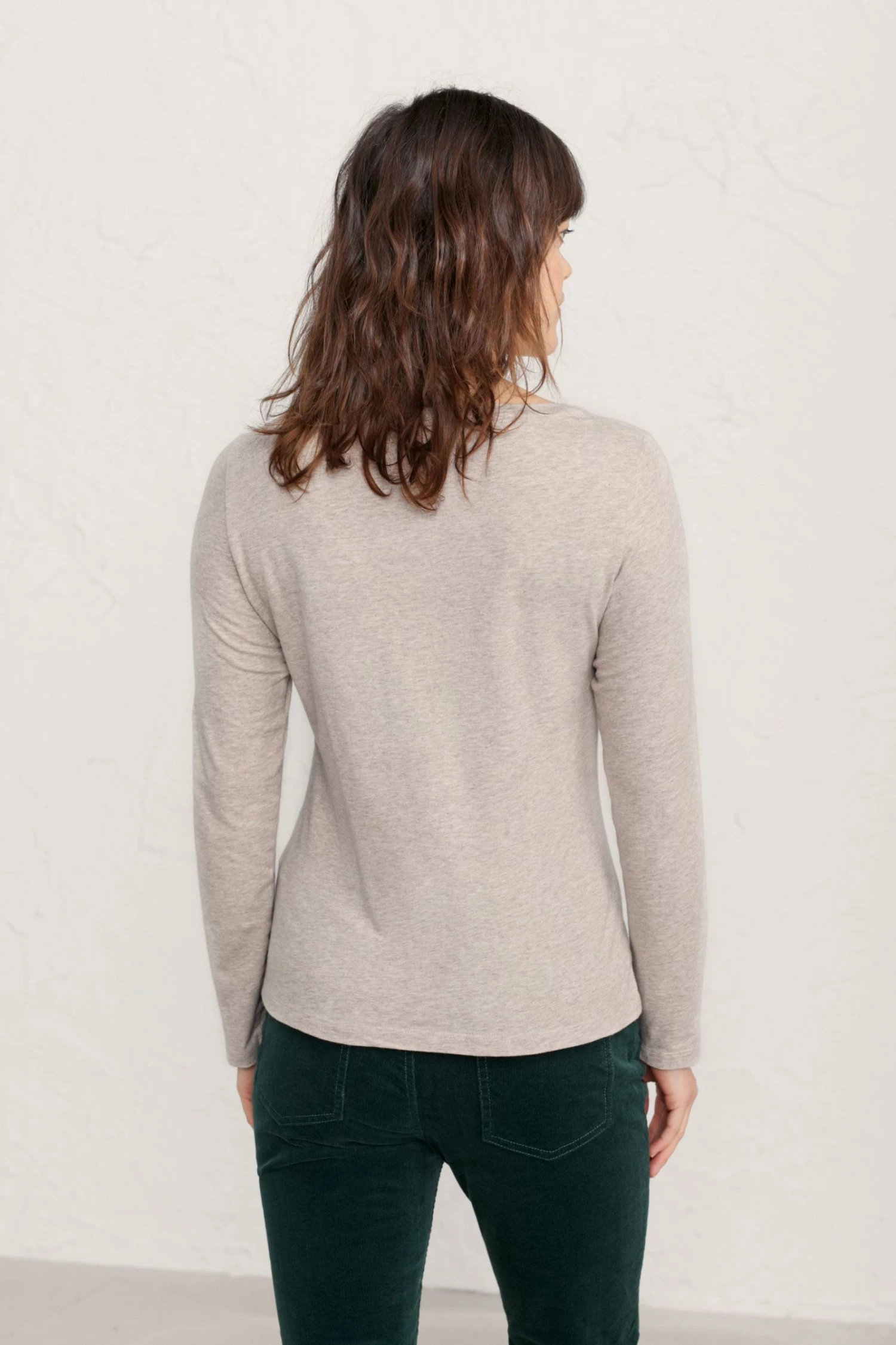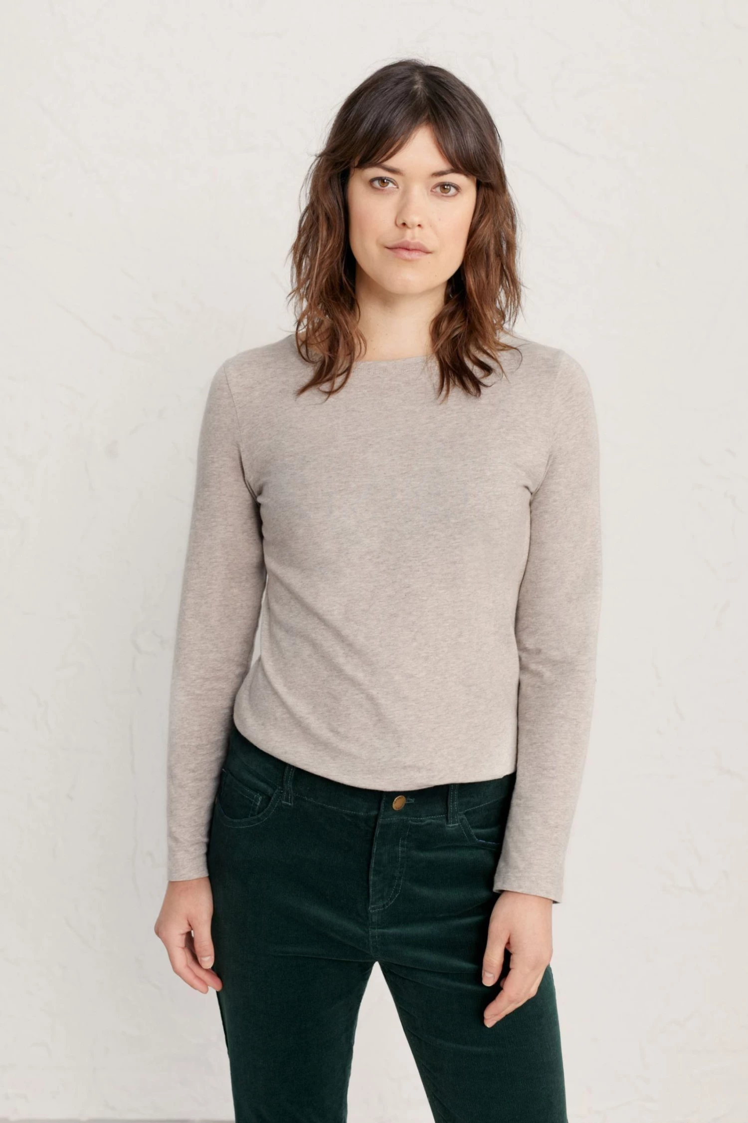 Made from organic cotton jersey with just a touch of stretch, this soft top has a boatneck and subtle texture. A wardrobe essential to layer and wear with skirts and trousers.