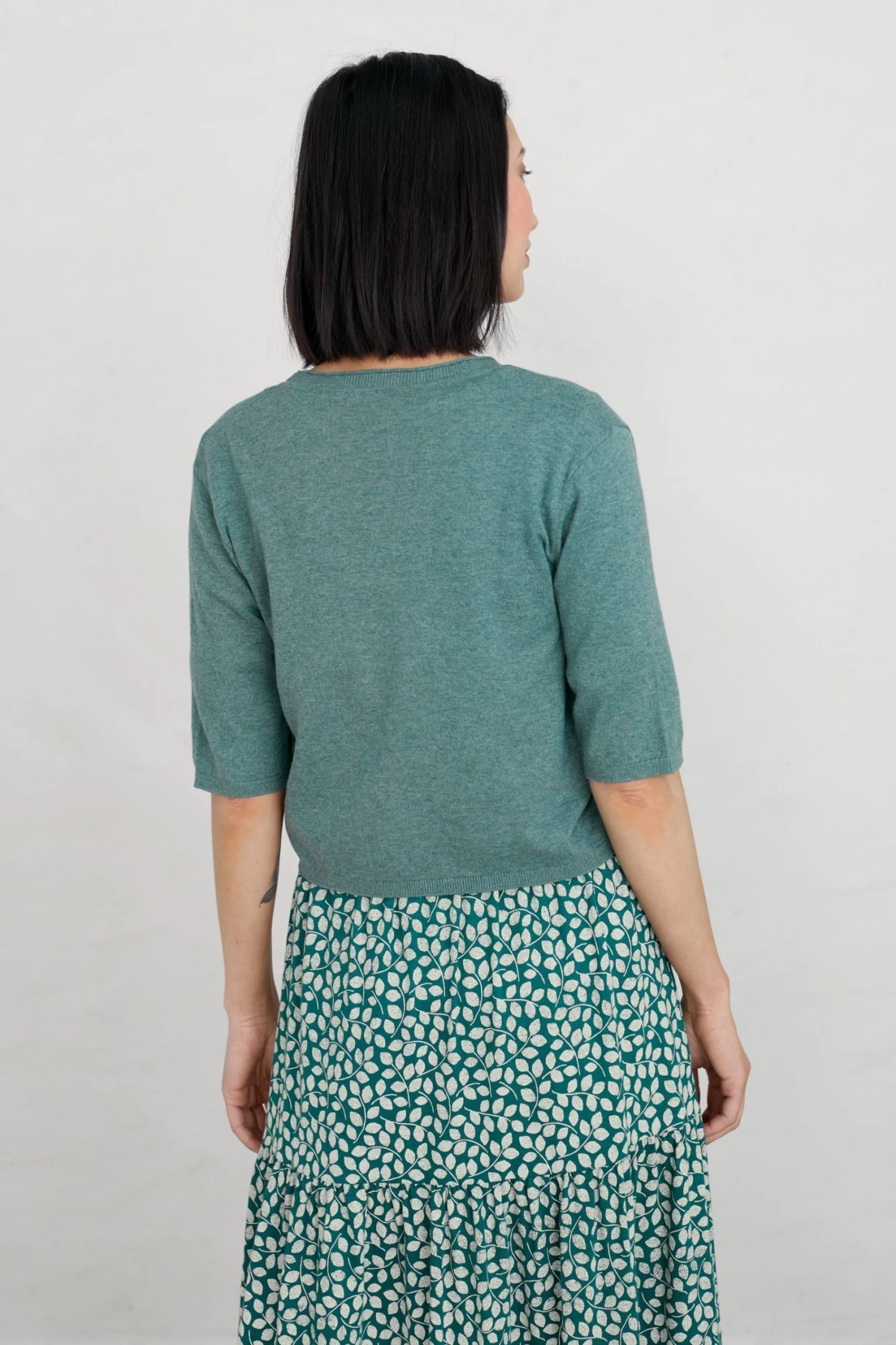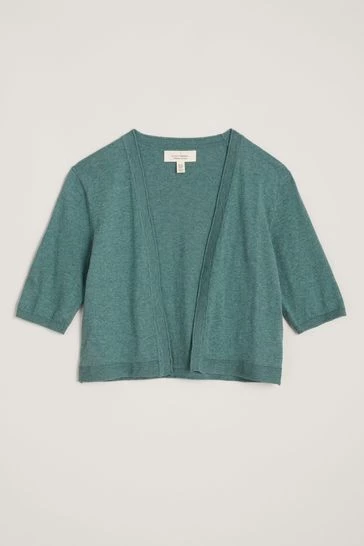 Simple shrug cardigan knit from organic cotton, perfect as a light cover up for summer celebrations.