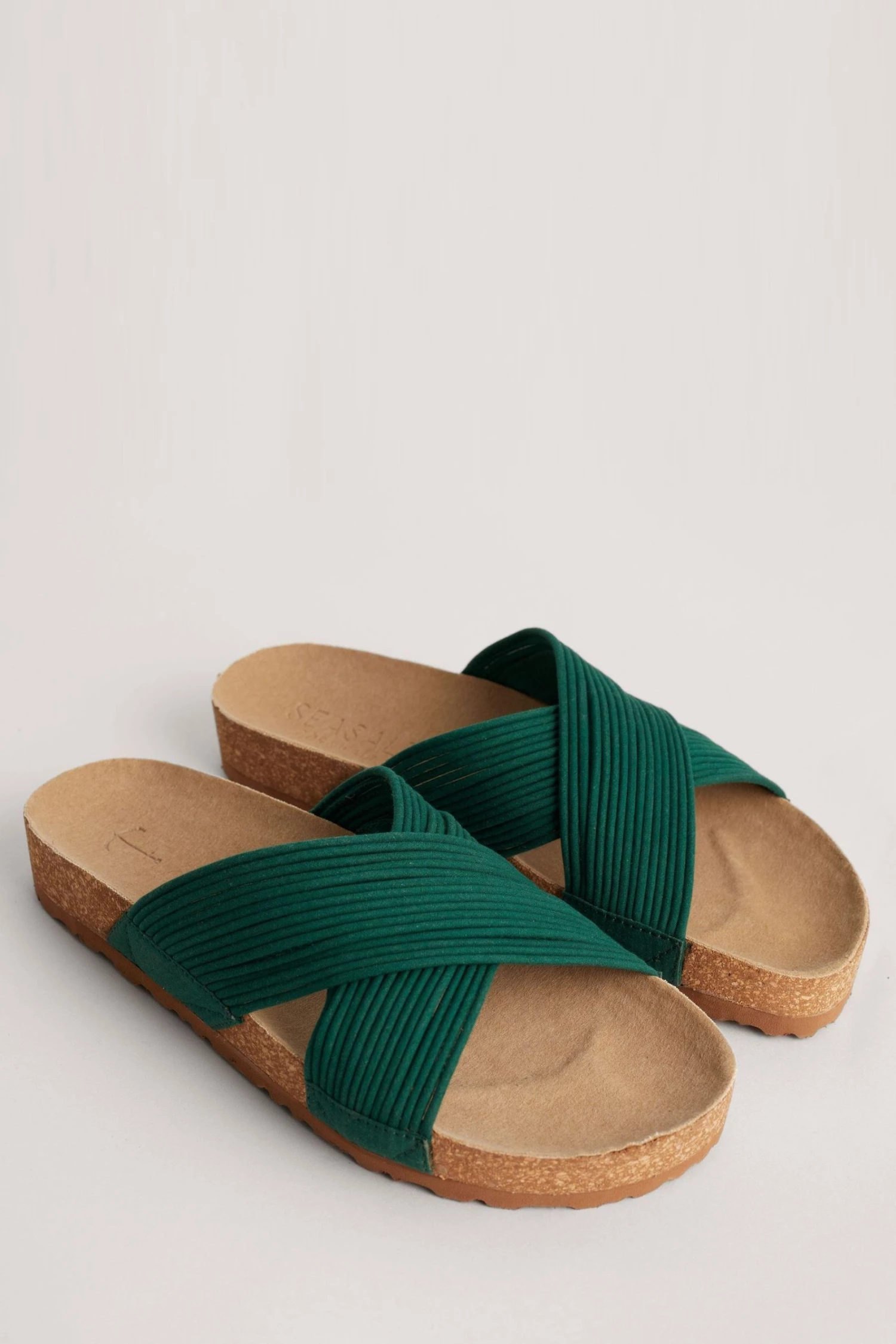 Vegan friendly artisan slider sandals, with soft fabric strap made from the excess fabric from clothing production.
