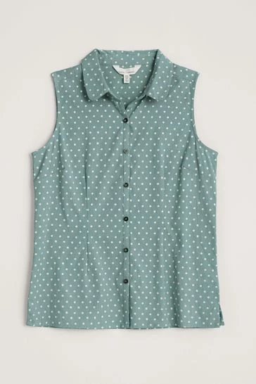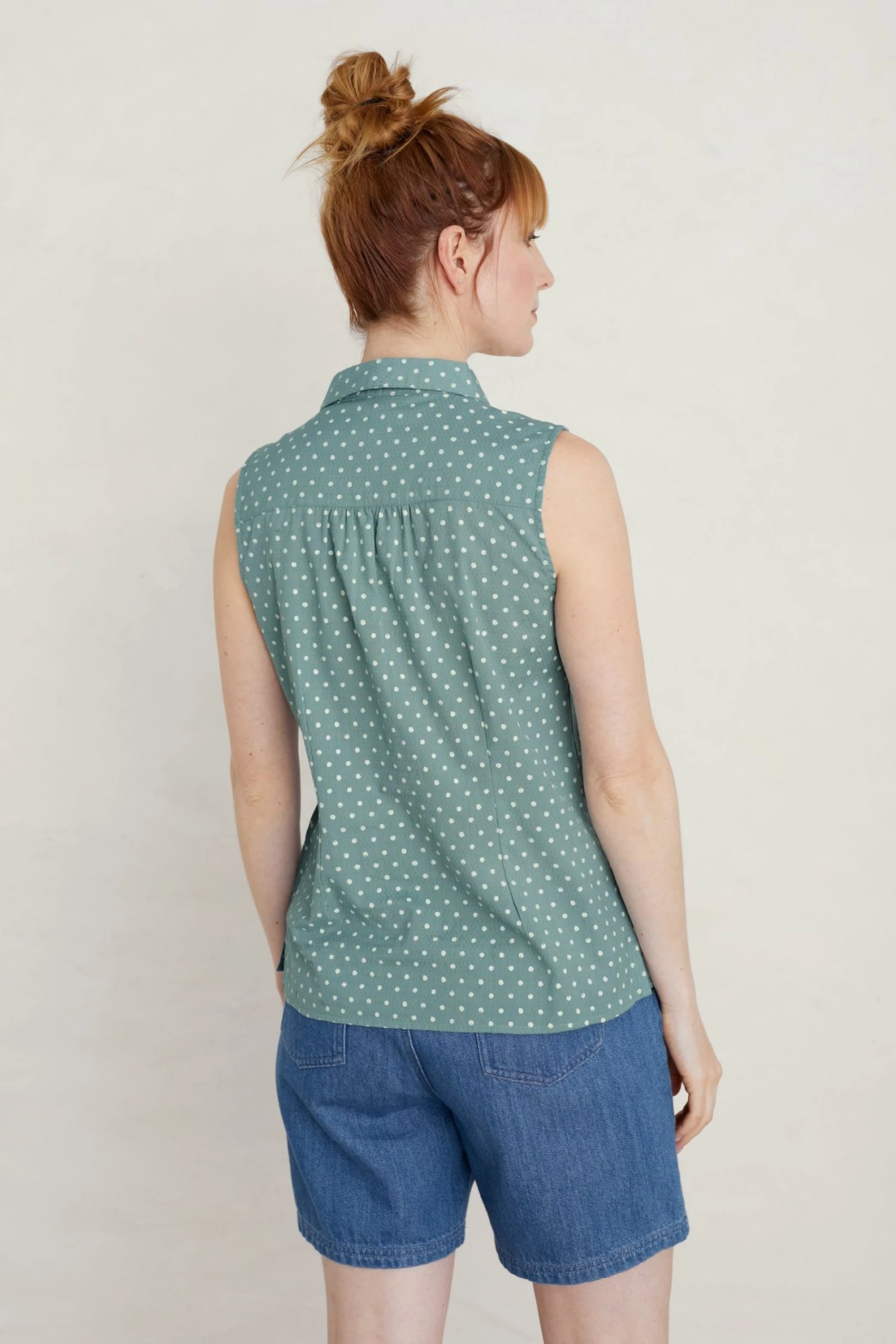 Organic cotton sleeveless top, with a button-down front and softly curved collar.