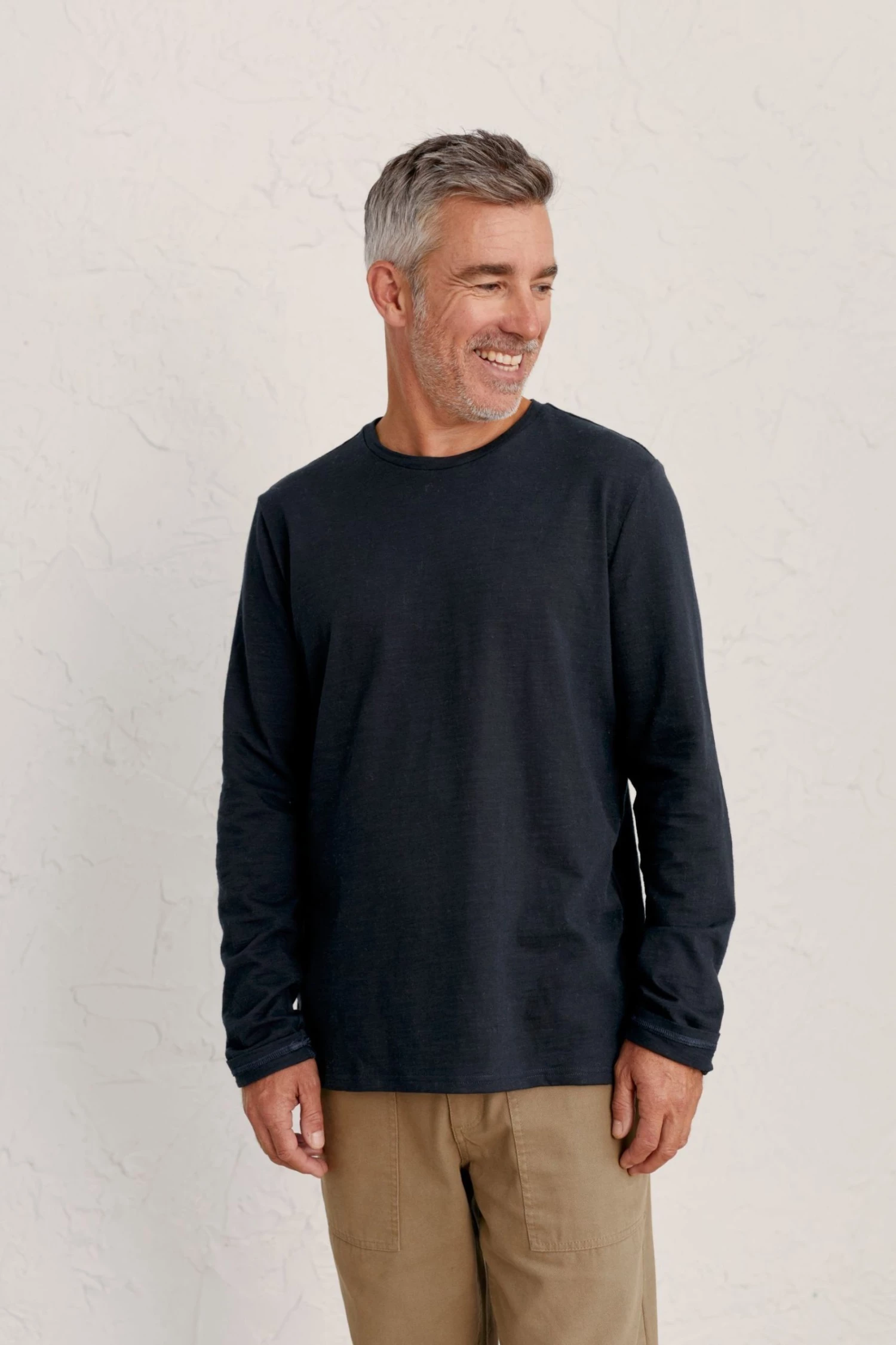 A T-shirt for men, made with organic cotton jersey with a subtly textured finish. Designed with long sleeves.