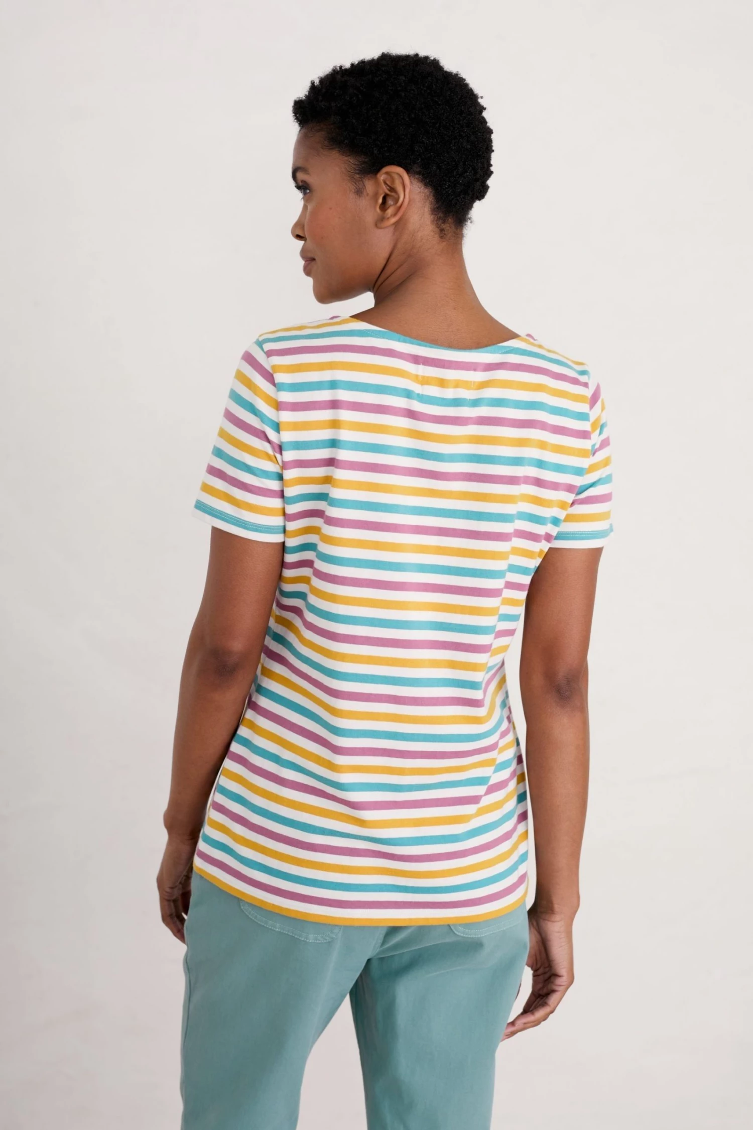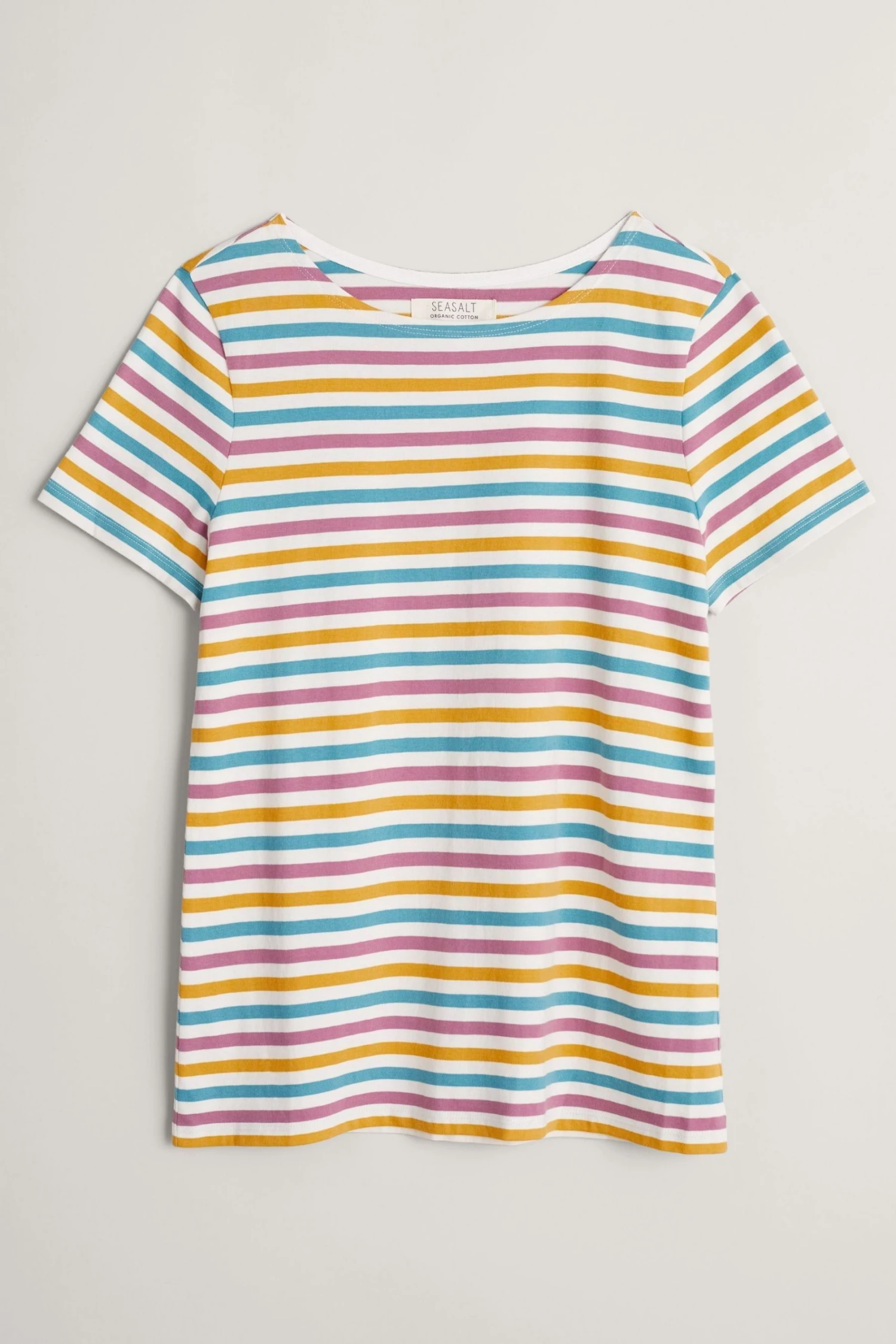Semi-fitted, short-sleeved T-shirt with wide, evenly spaced Cornish stripes in soft organic cotton jersey.