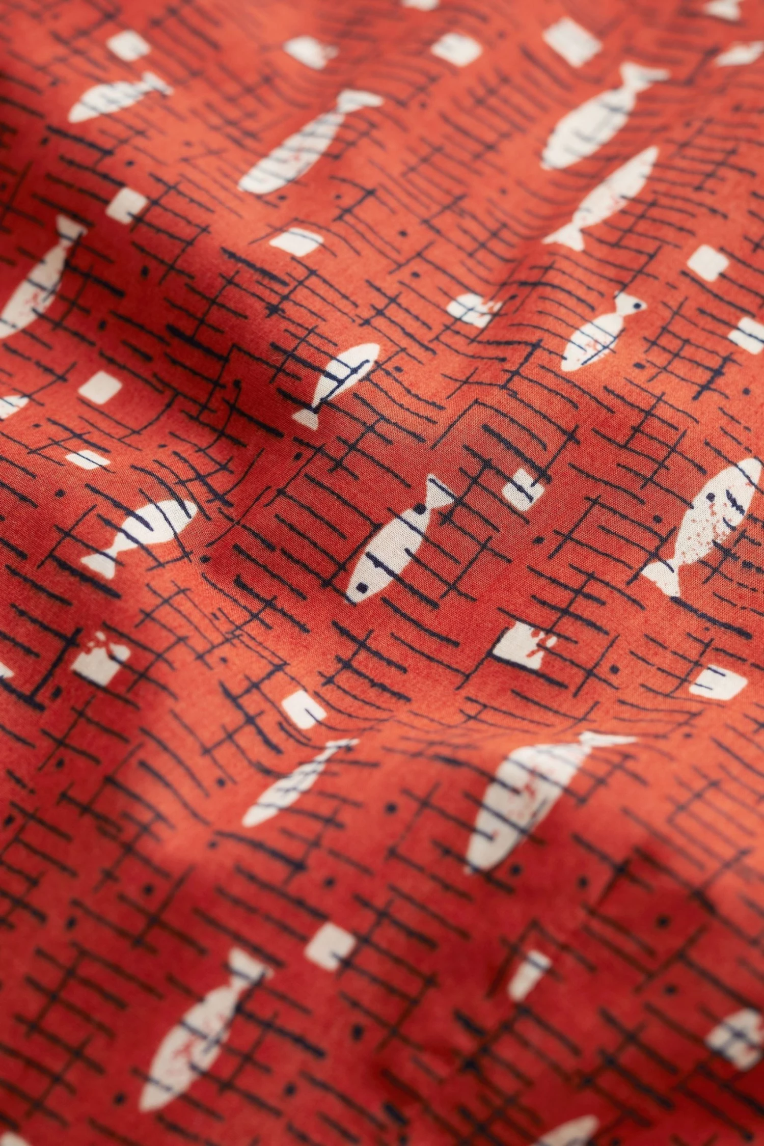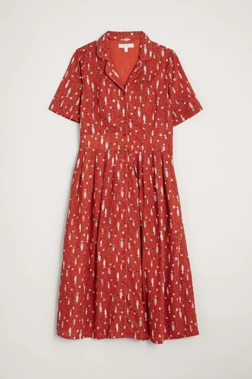 Midi length, vintage style dress in cotton voile with button through front and half sleeves.