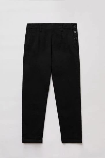Tapered trousers with stylish nautical detailing. Seasalt’s bestselling Waterdance Trousers are a year-round favourite, with a touch of stretch for ease of movement. They sit just below the natural waist and have a tapered shape that’s flattering and easy to wear just roll them up to vary your look. They are styled with side fastening buttons and an elasticated back waistband for a comfortable fit and finished with two slanted side pockets and two back patch pockets.