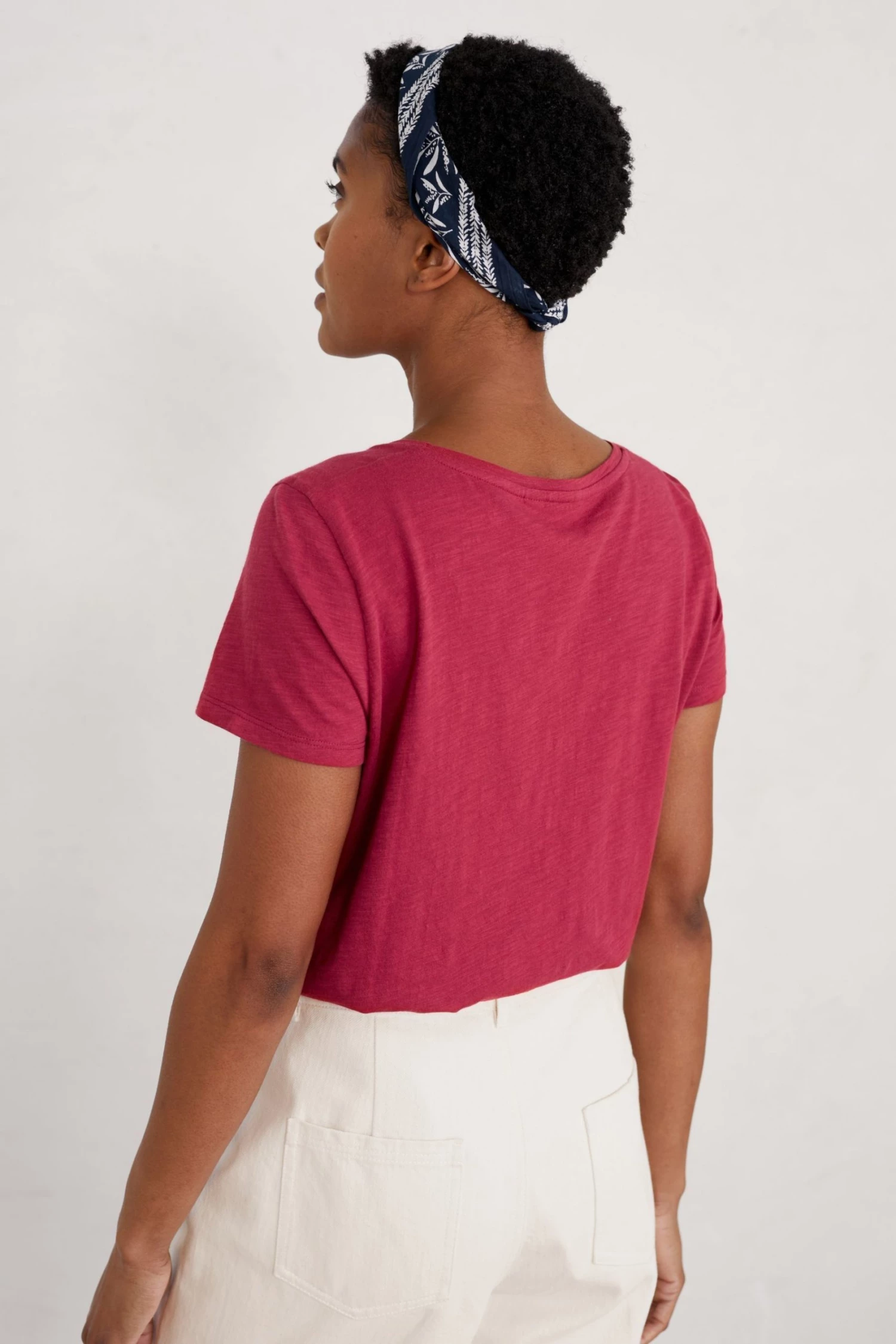 Easy fit short sleeved printed top with scoop neck in organic cotton jersey.