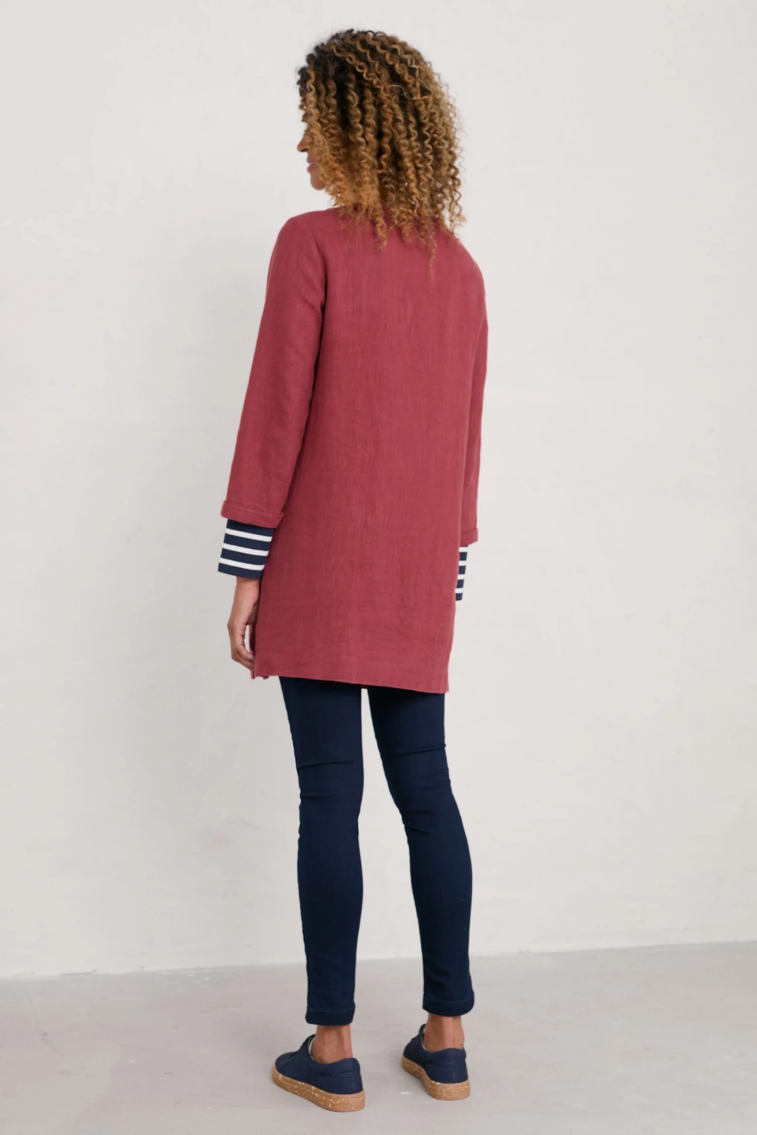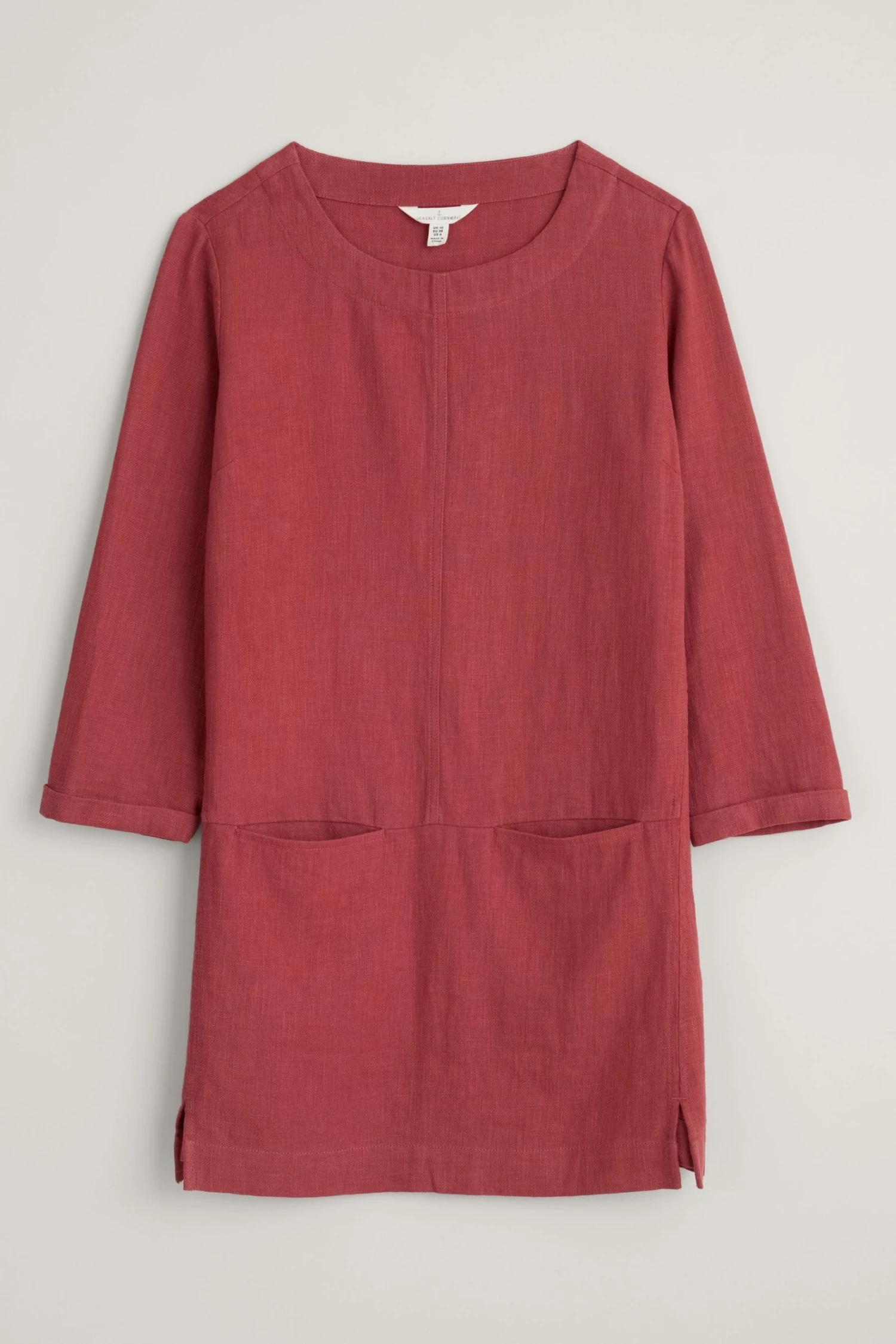 A tunic with an easy fit and ¾ length sleeves. Made from a tactile blend of sustainable ramie and cotton. Side seams and little splits at the hem create definition, with a dropped waist, front pockets and turn-up cuffs.