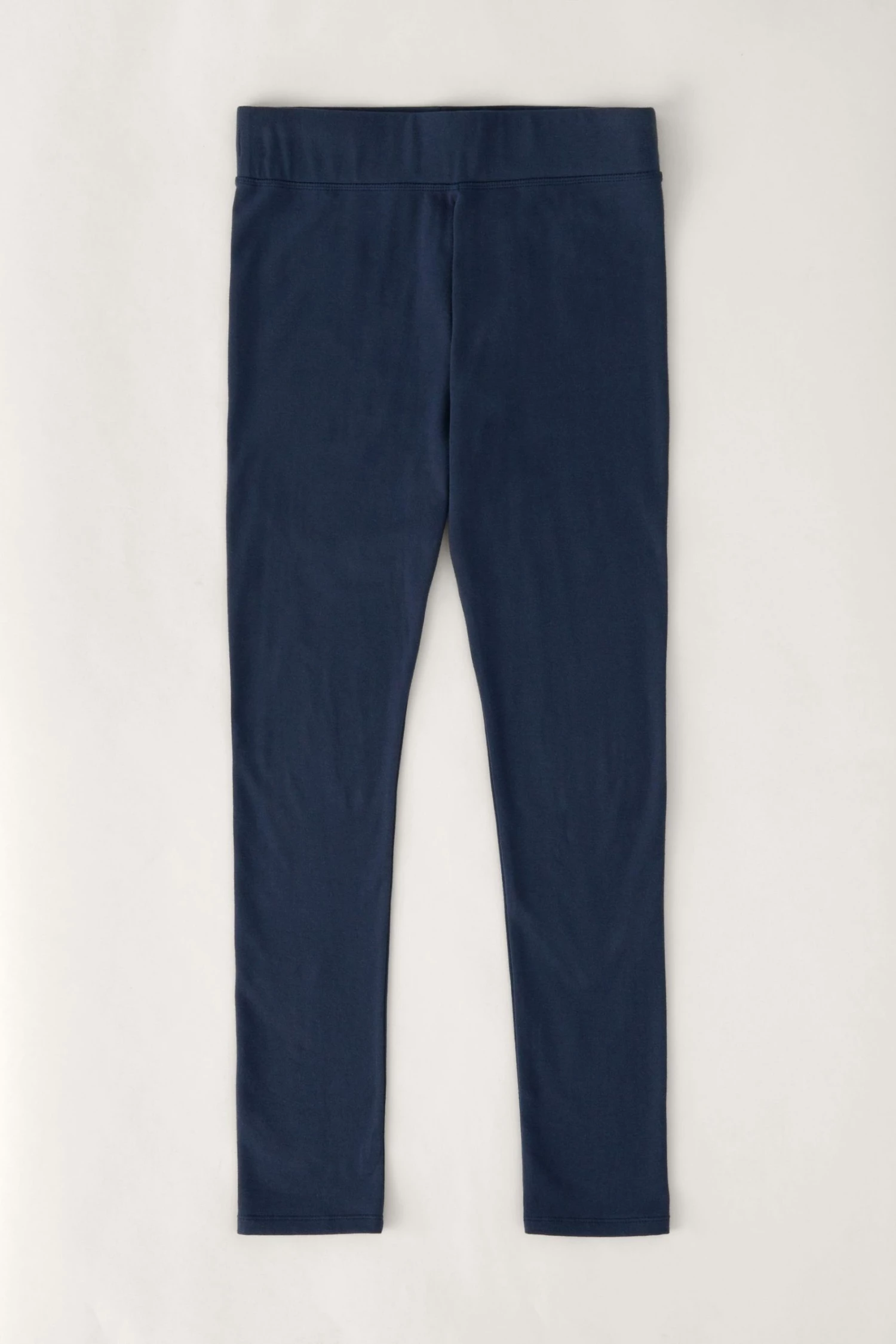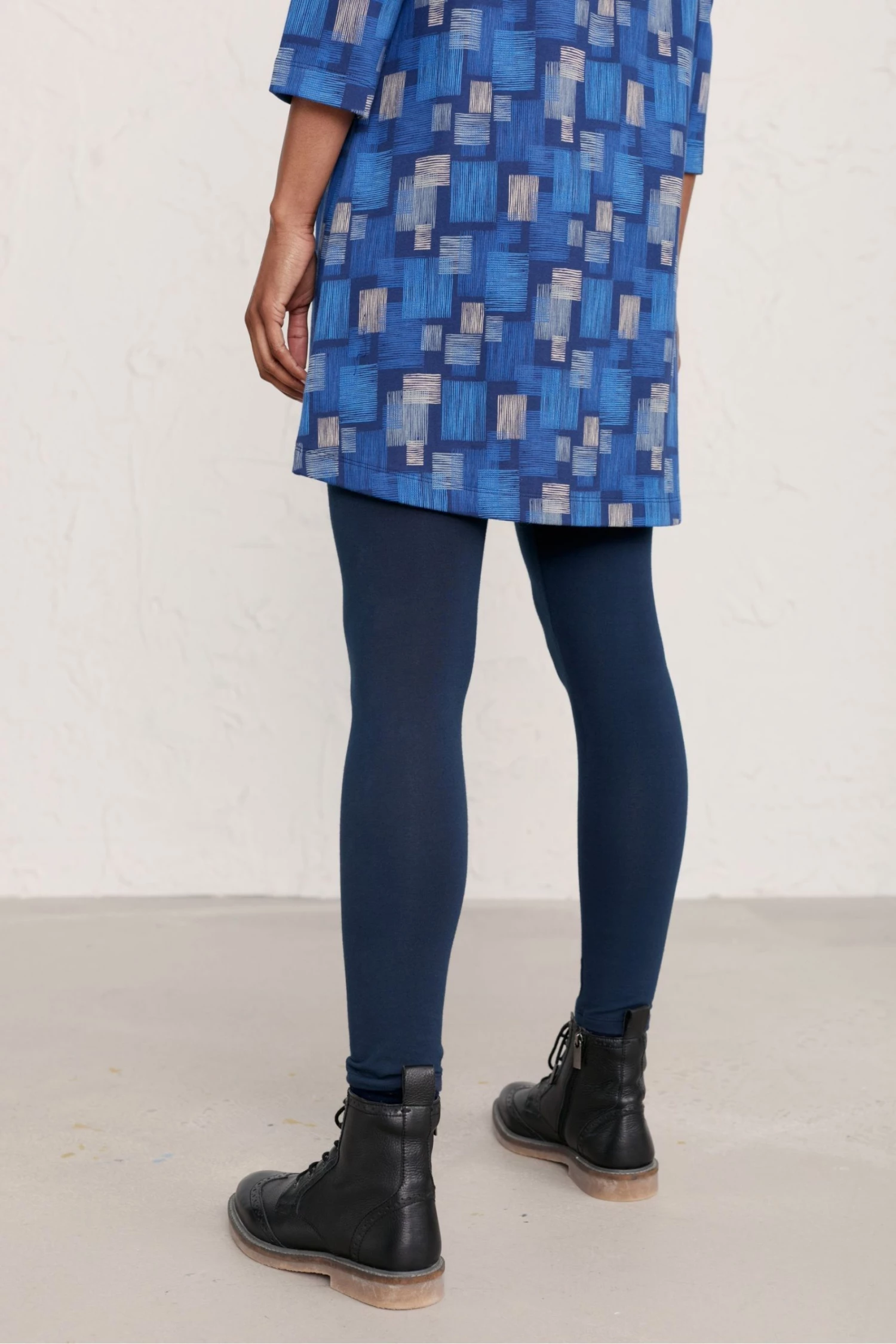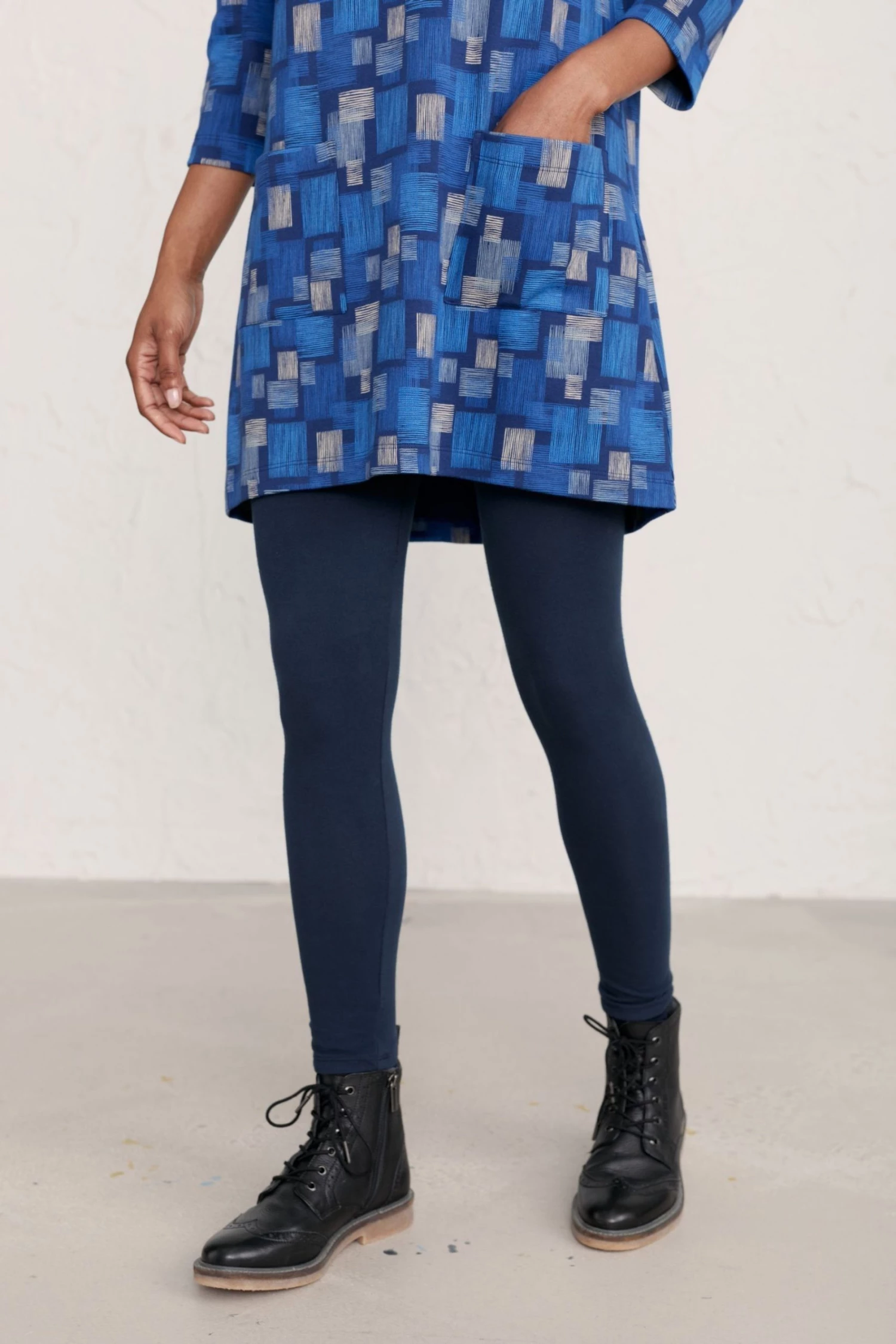Organic cotton jersey leggings offering good coverage, with a deep, comfortable elasticated waistband. Ideal for relaxing or gentle movement and lovely paired with a longline Seasalt sweatshirt.