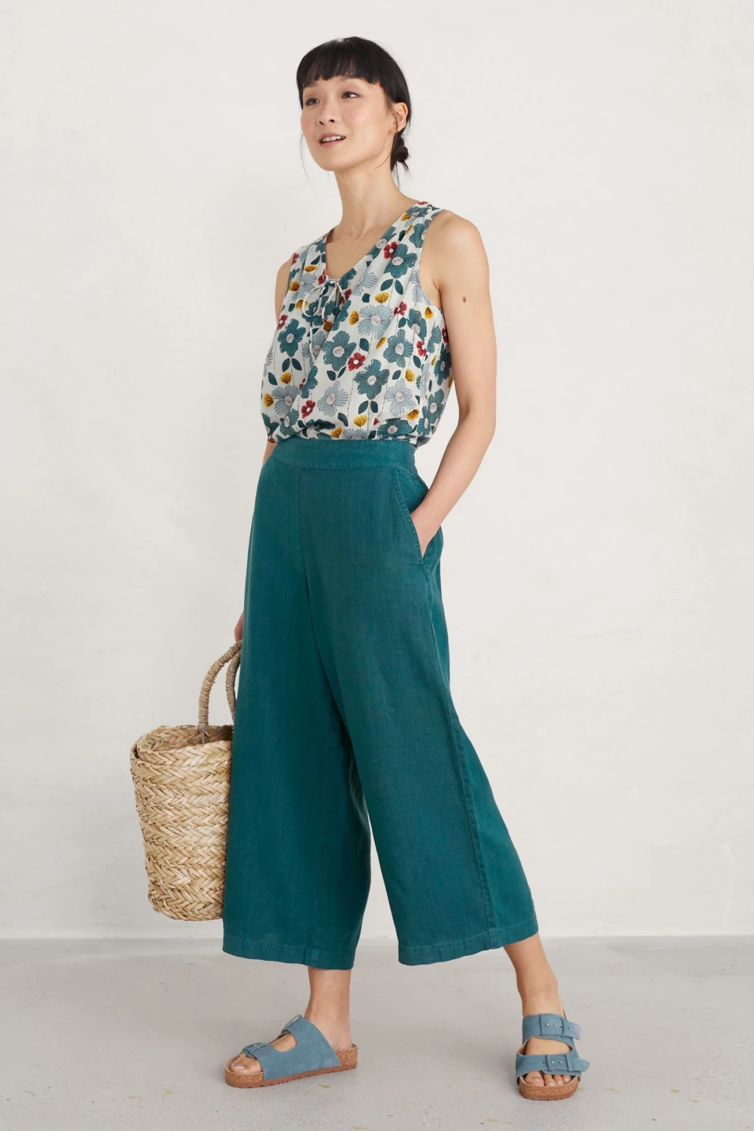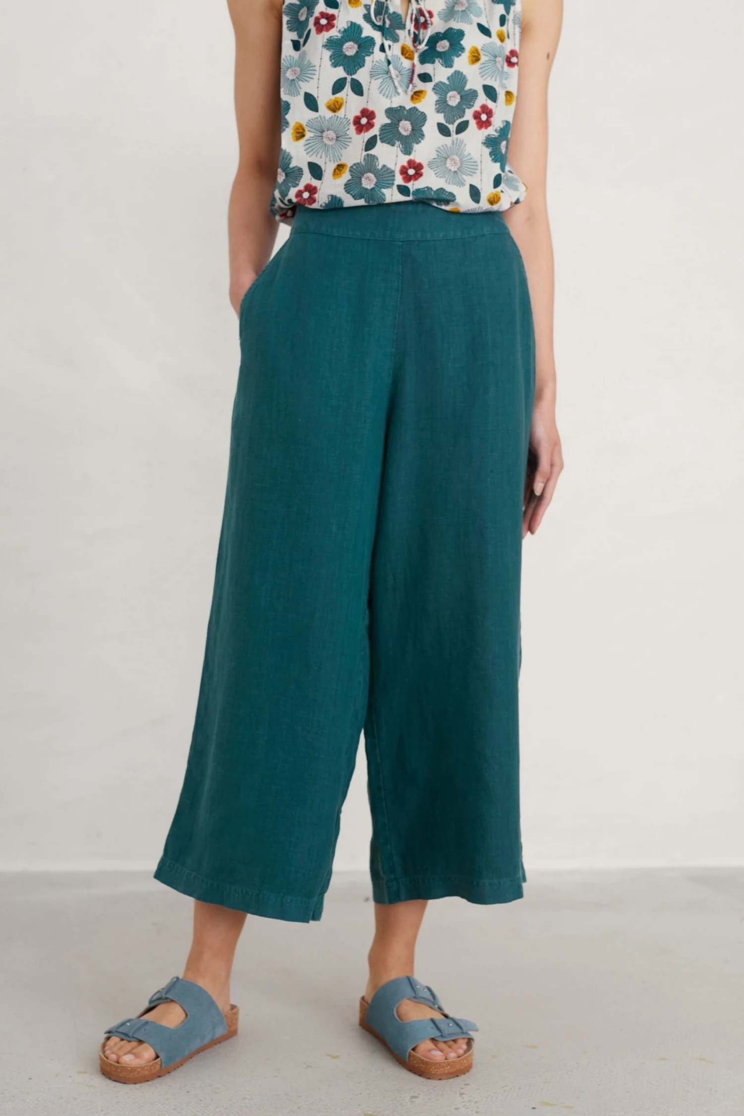 Wide leg culottes made from garment-dyed linen with an elasticated back waist.