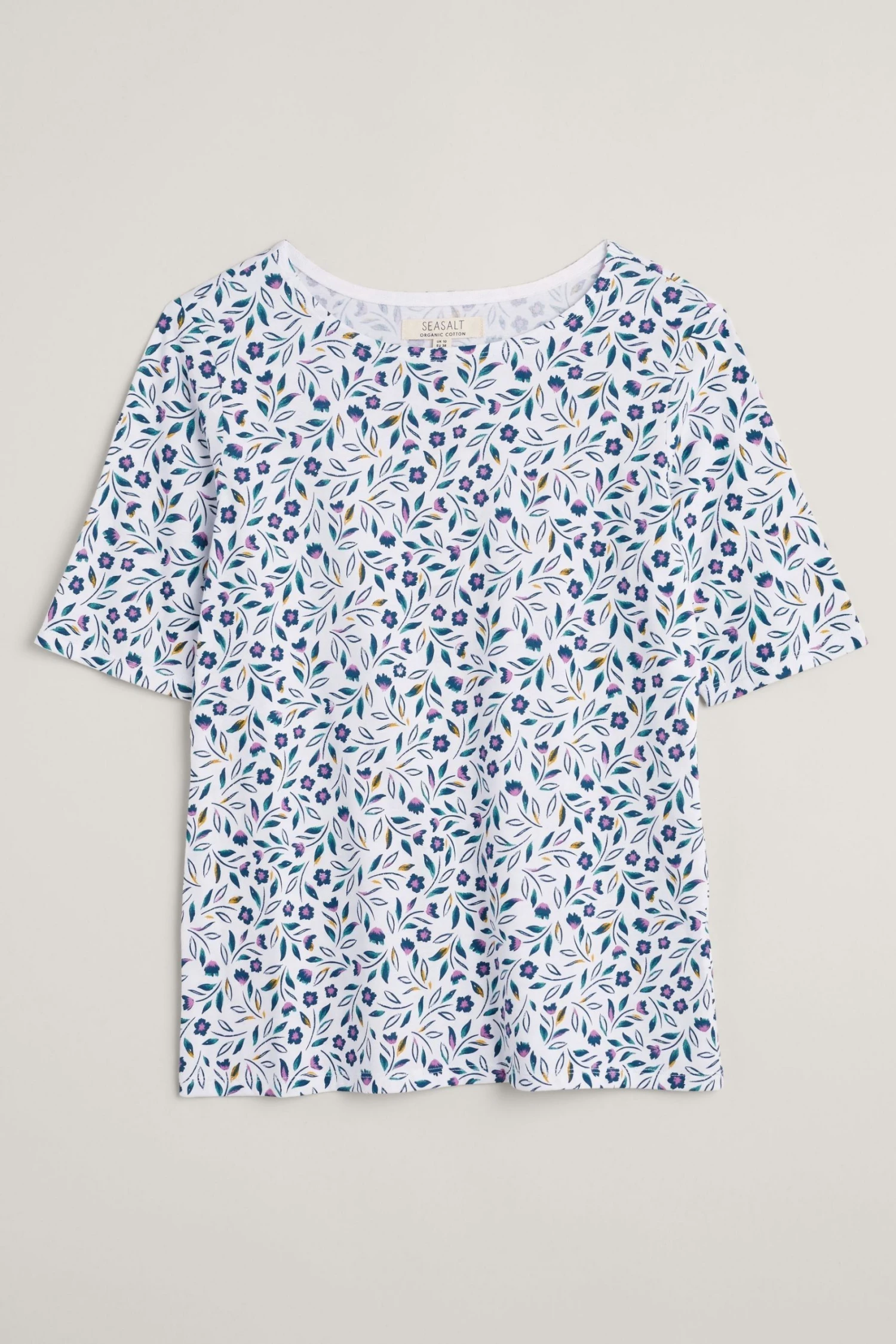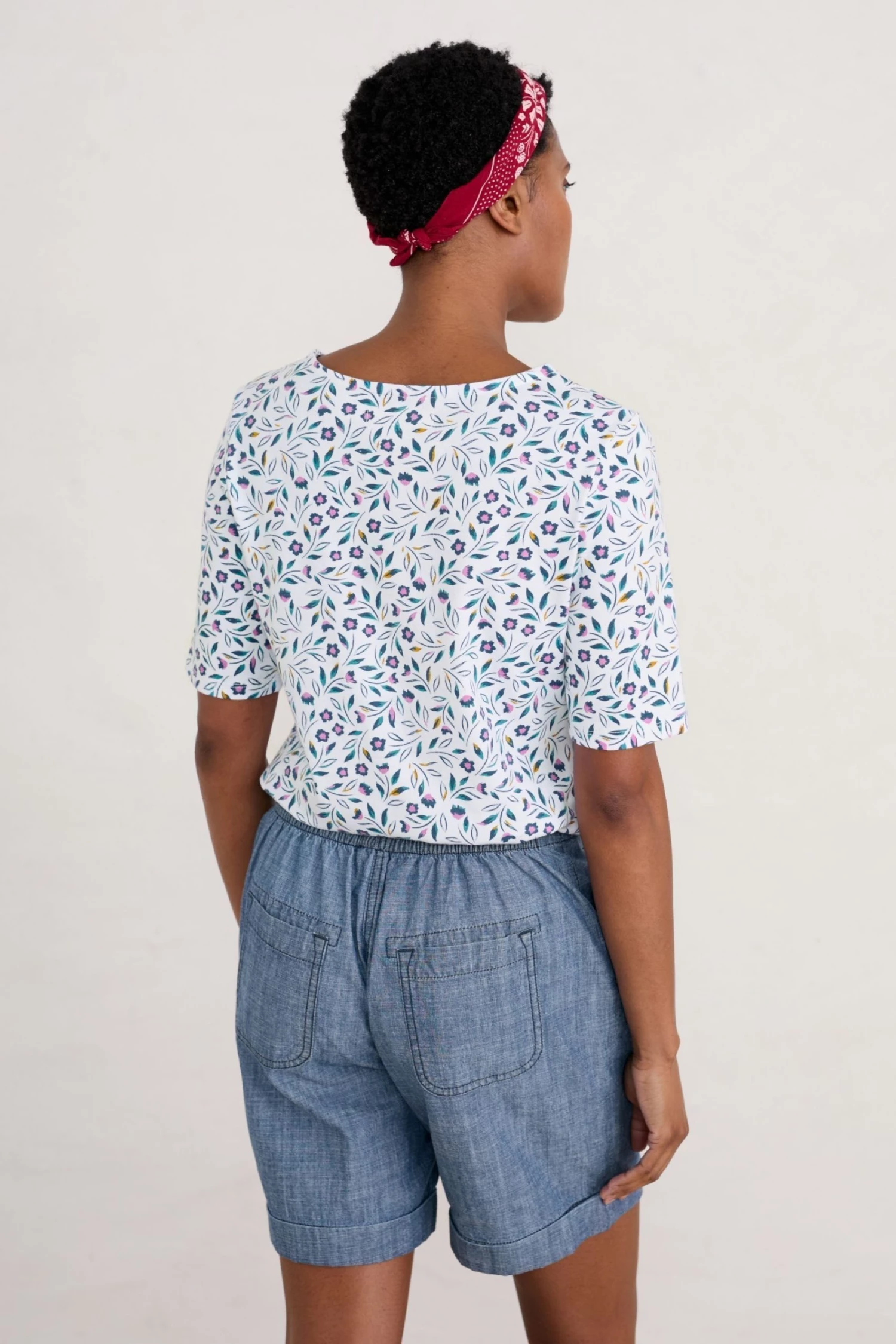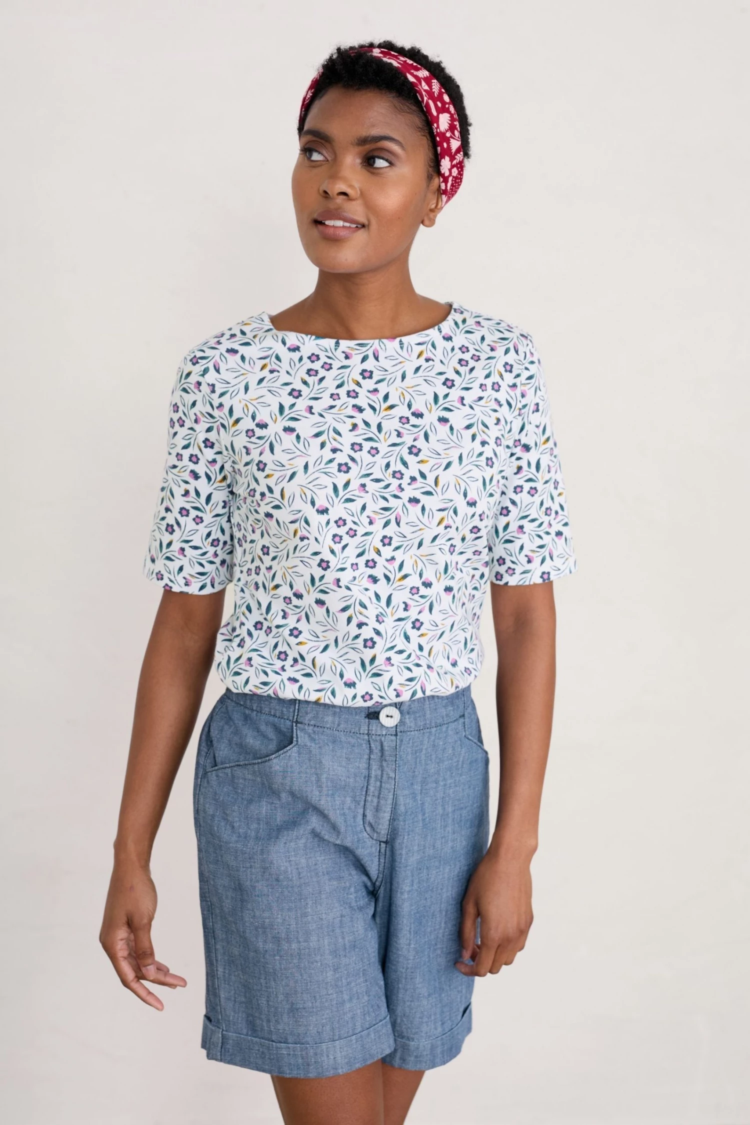 Neat fit organic cotton jersey top with half sleeves and boat neck.