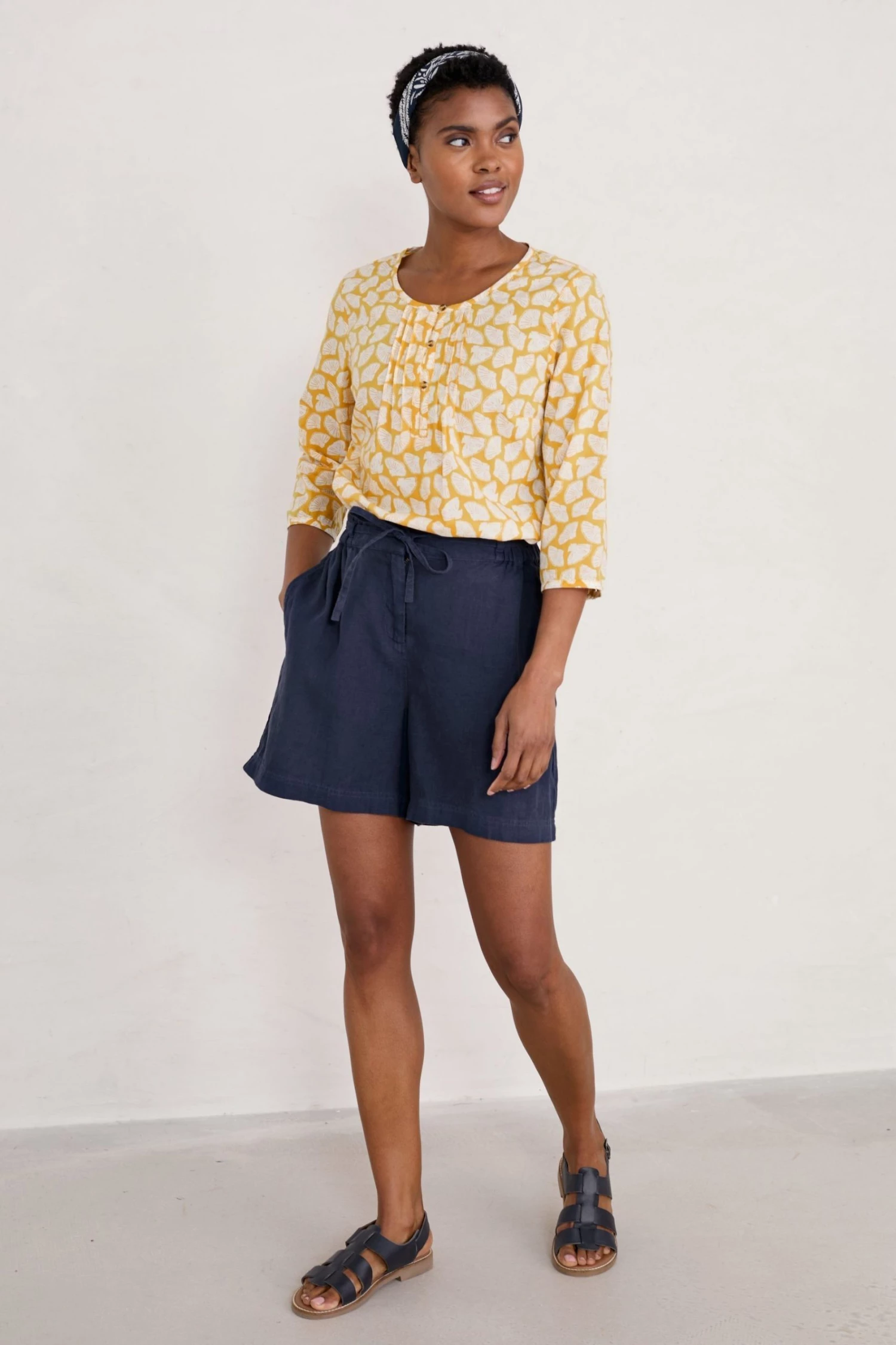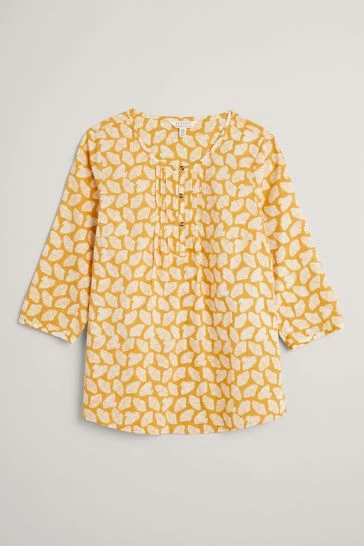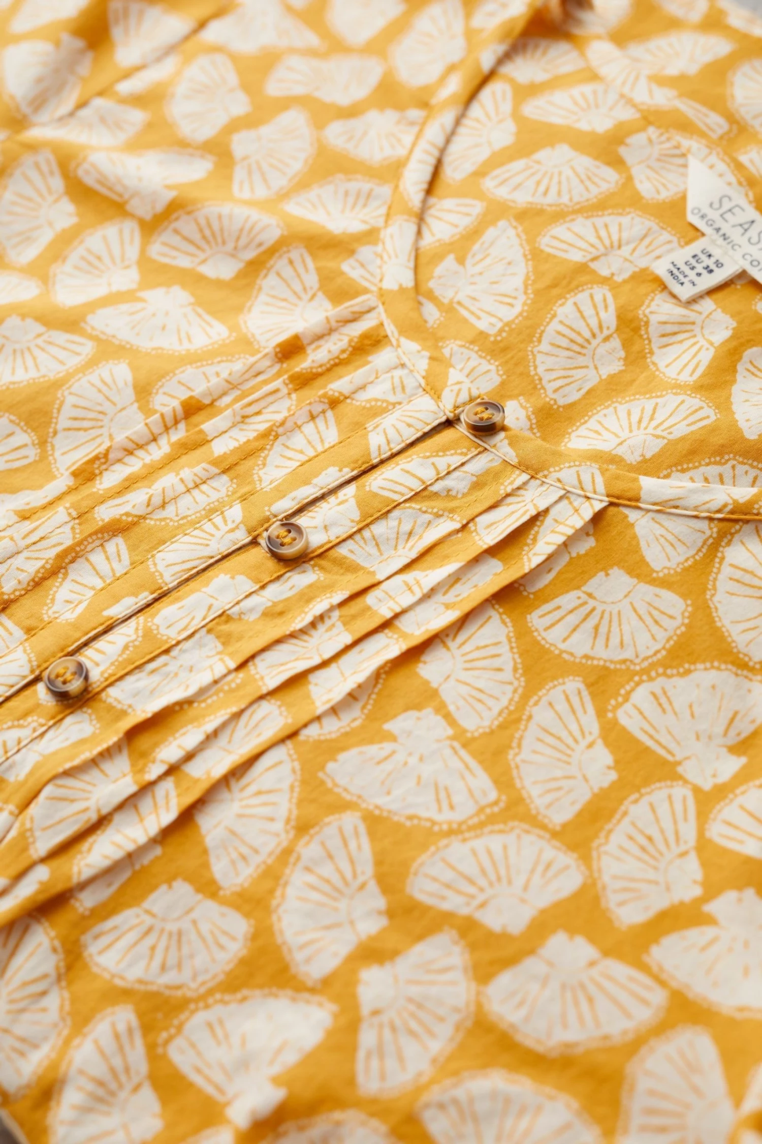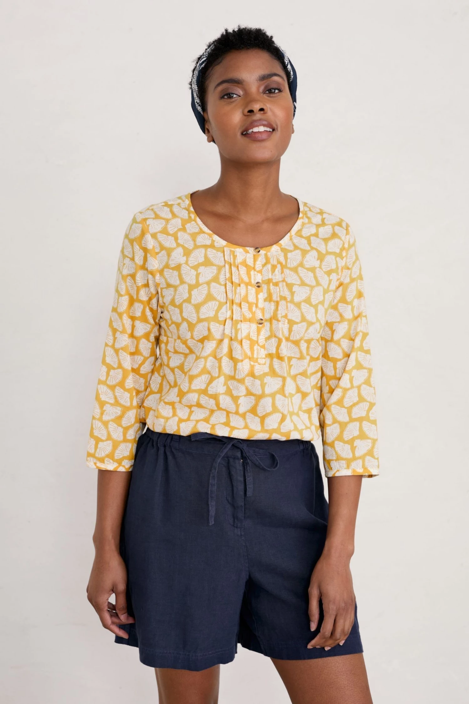 Floral summer top in cool, breathable organic cotton with 3/4 sleeves and button placket.