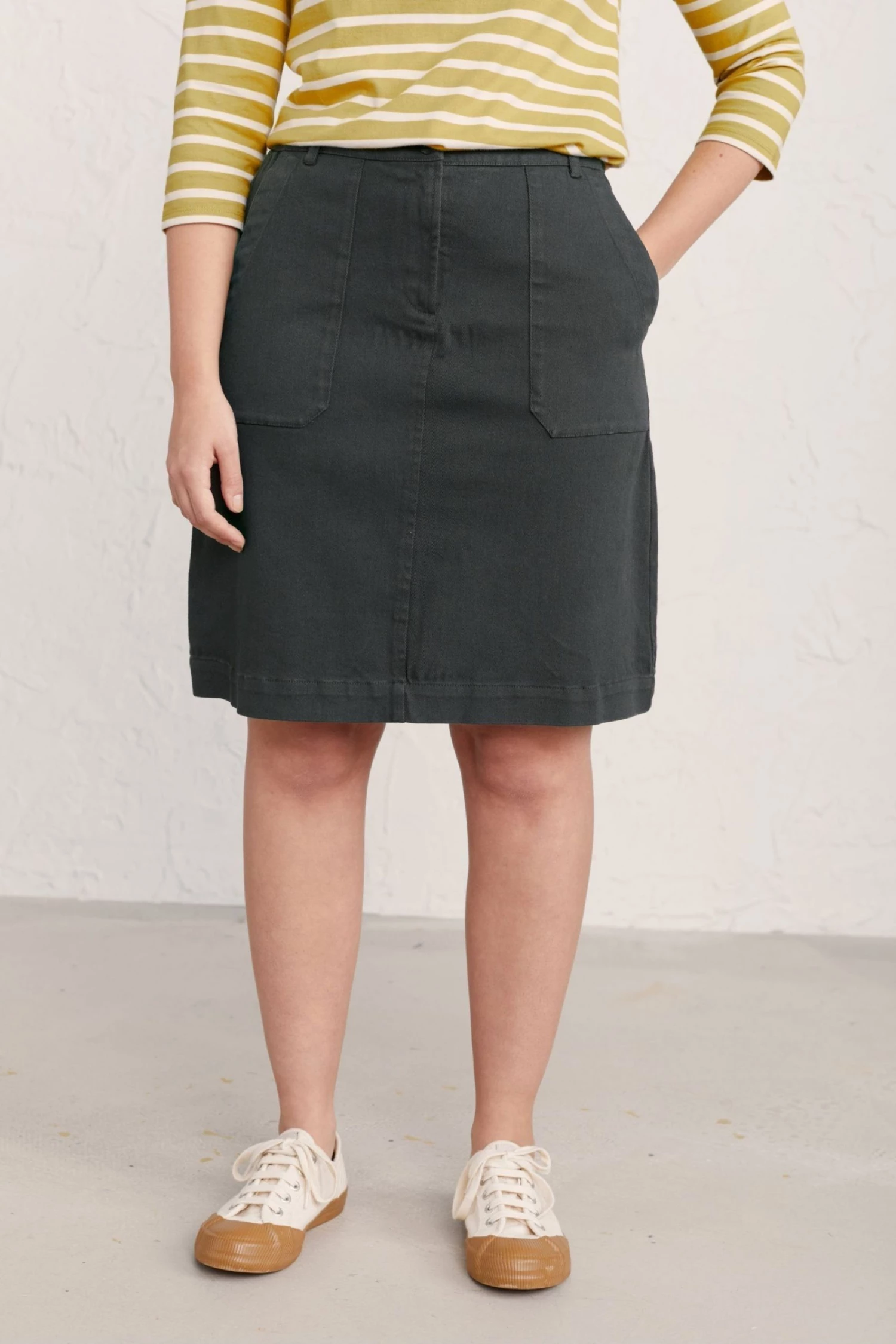 A versatile, above-the-knee, A-line cotton skirt, perfect for summer adventures.