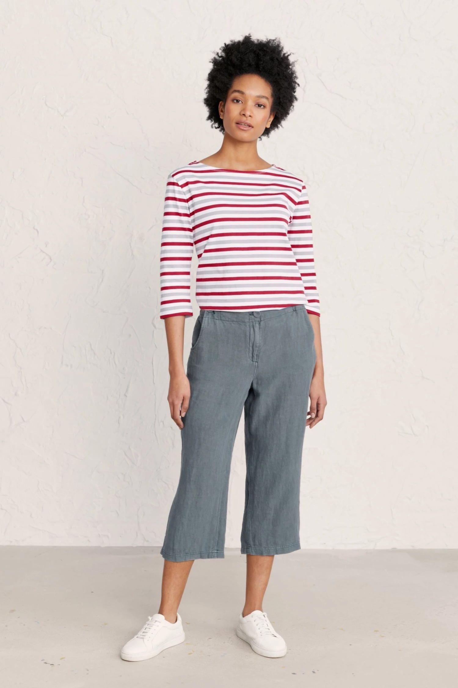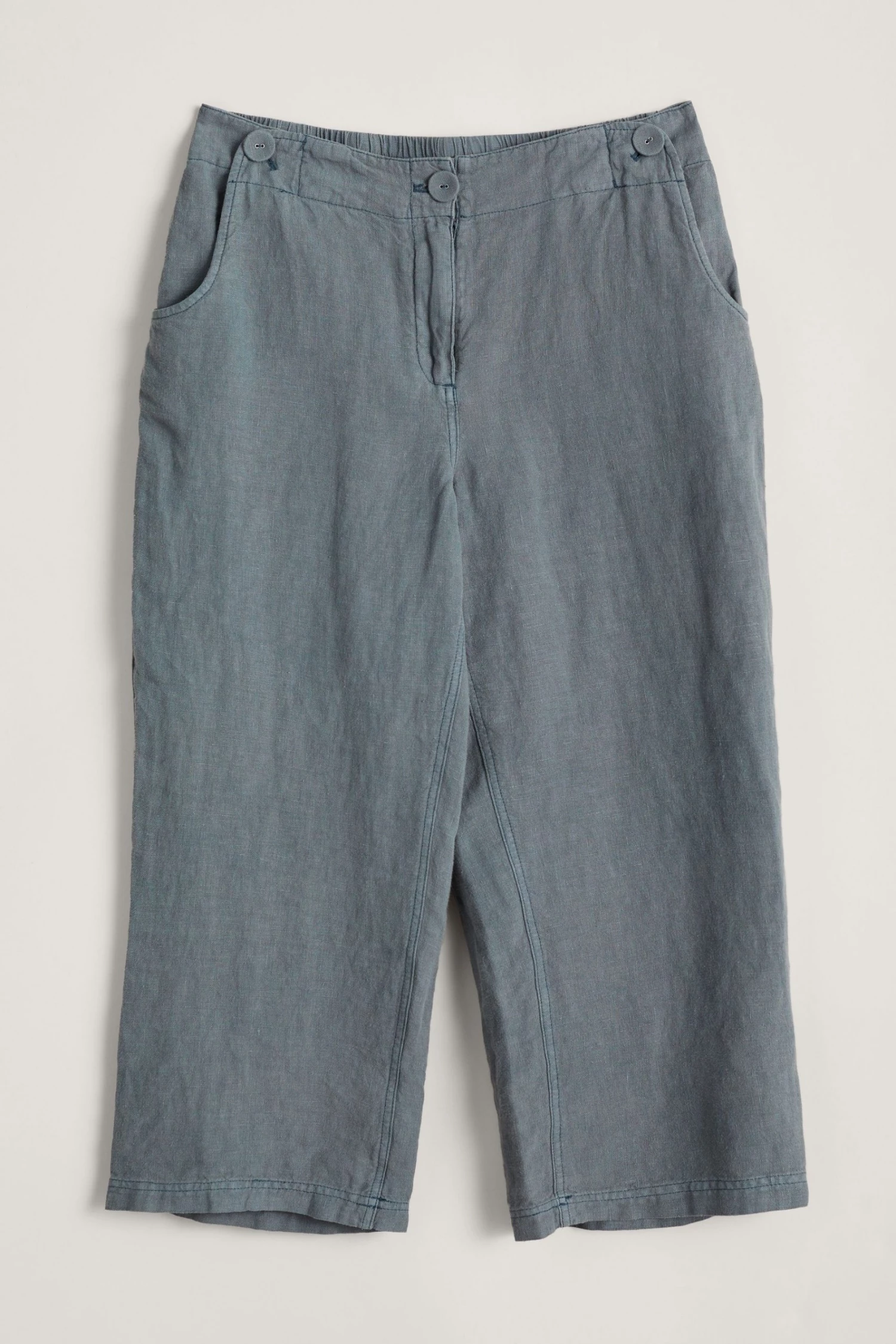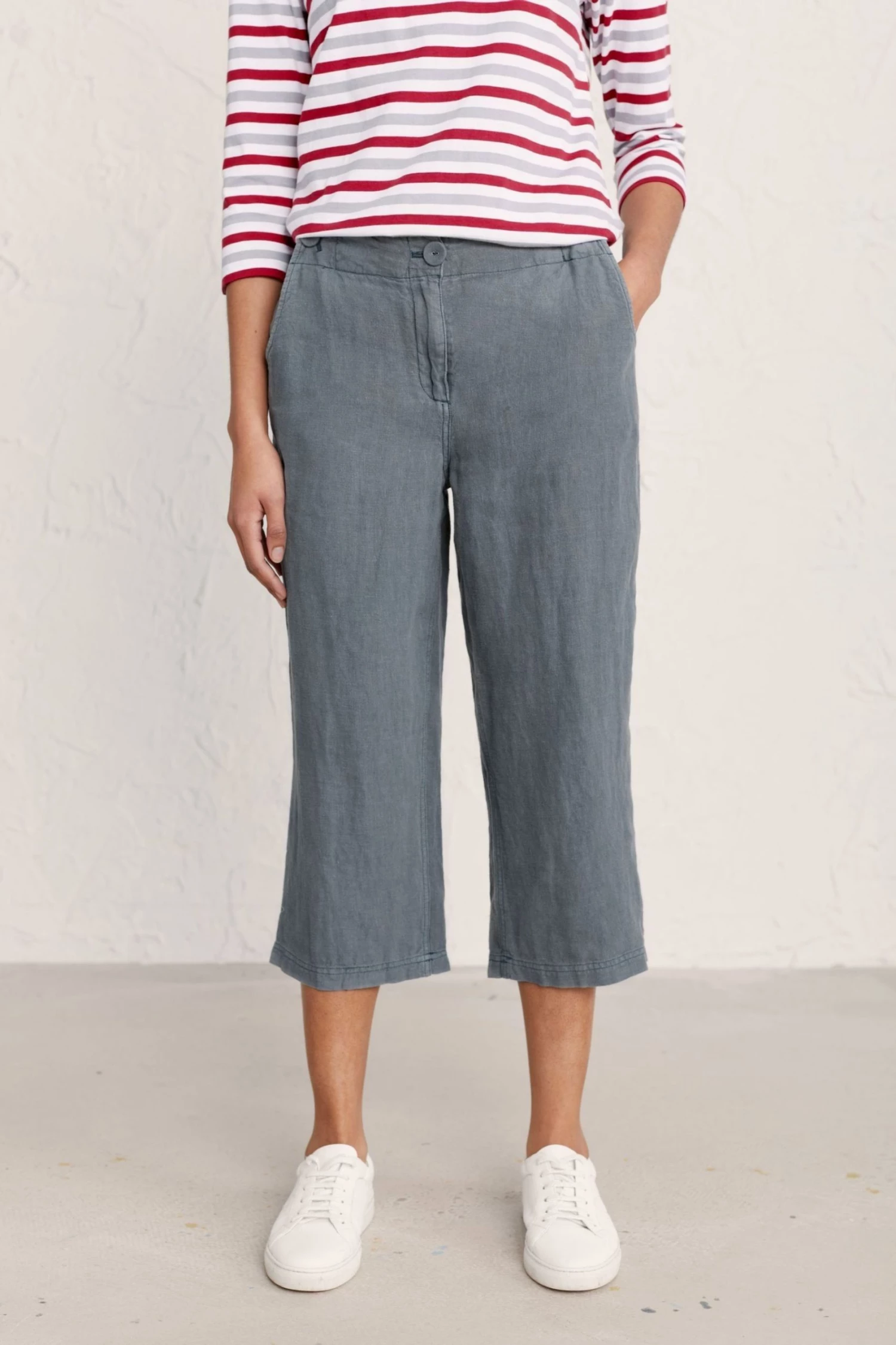 Straight leg cropped summer trousers, made from softly textured and breathable linen with an elasticated back waist.