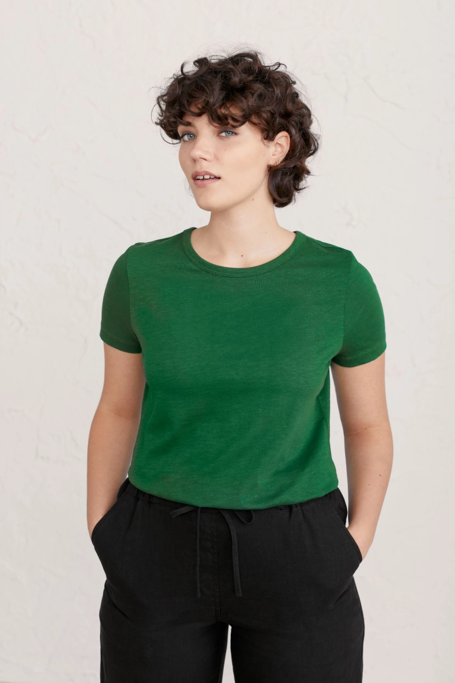 Easy fit cotton T-shirt with a soft, woven slub texture, short sleeves and crew neck.