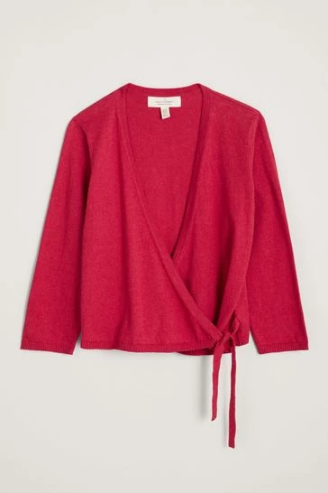 Wrap cardigan with 3/4 length sleeves and a slightly dropped shoulder.